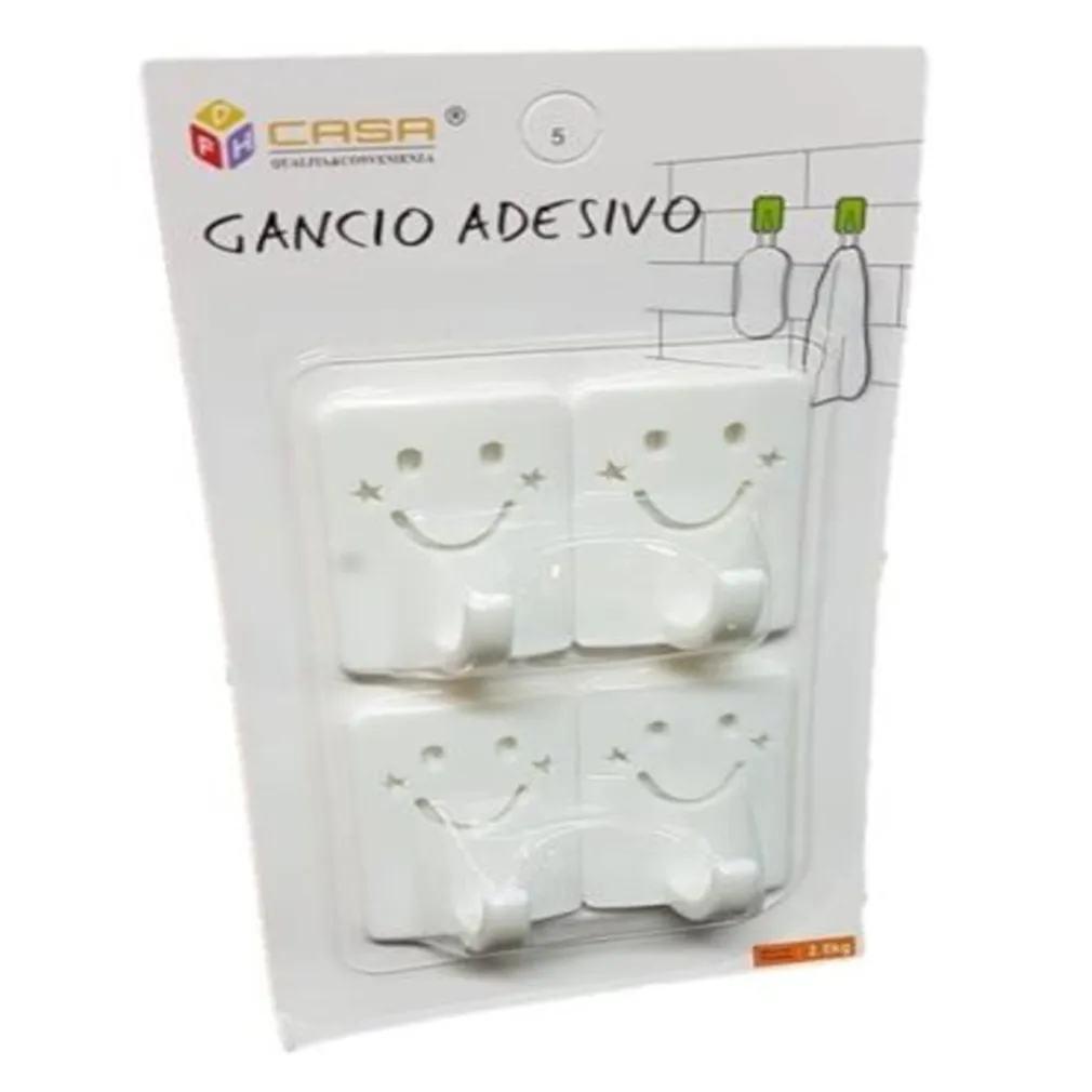 Set 4 Ganci Appendini da Parete Adesive Casa Cucina Bagno Attaccapanni Smile