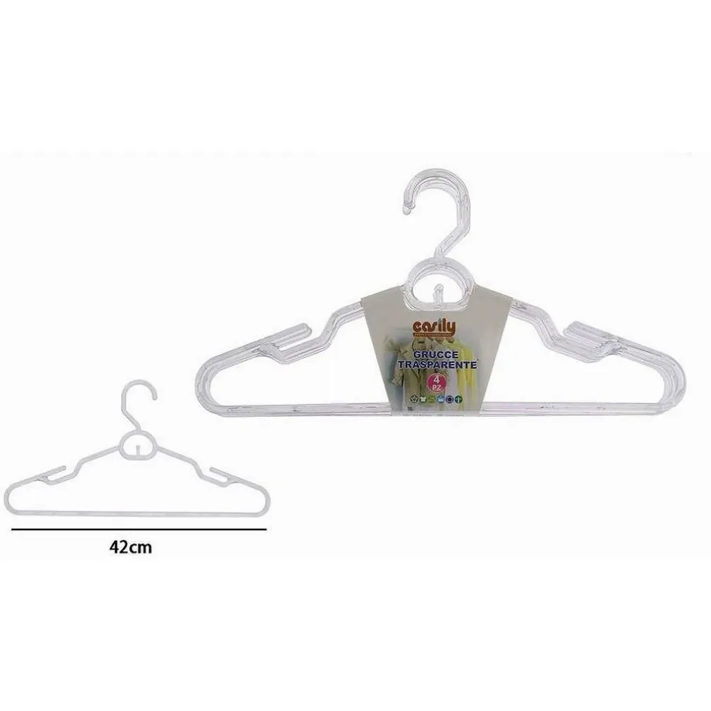 Non aspettare oltre, aggiungi il SET 4 GRUCCE STAMPELLE PLASTICA TRASPARENTE al tuo carrello e trasforma il tuo armadio in un’oasi di ordine e stile!