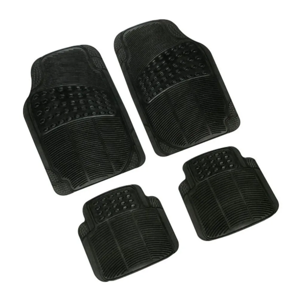Set composto da 4 tappeti per auto ( 2 anteriori e 2 posteriori) realizzati in gomma sintetica PVC in colore nero fondo antiscivolo.