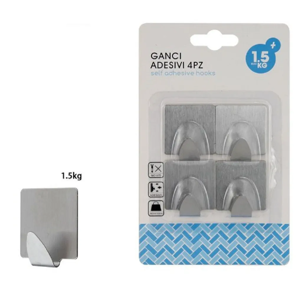 SET 4 PZ GANCI APPENDINI ADESIVI PARETE CUCINA BAGNO ATTACCAPANNI QUADRATI 59663