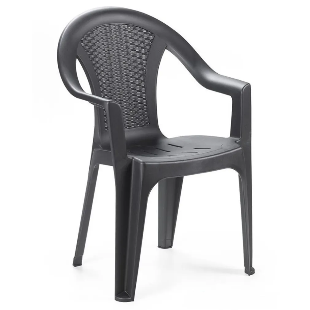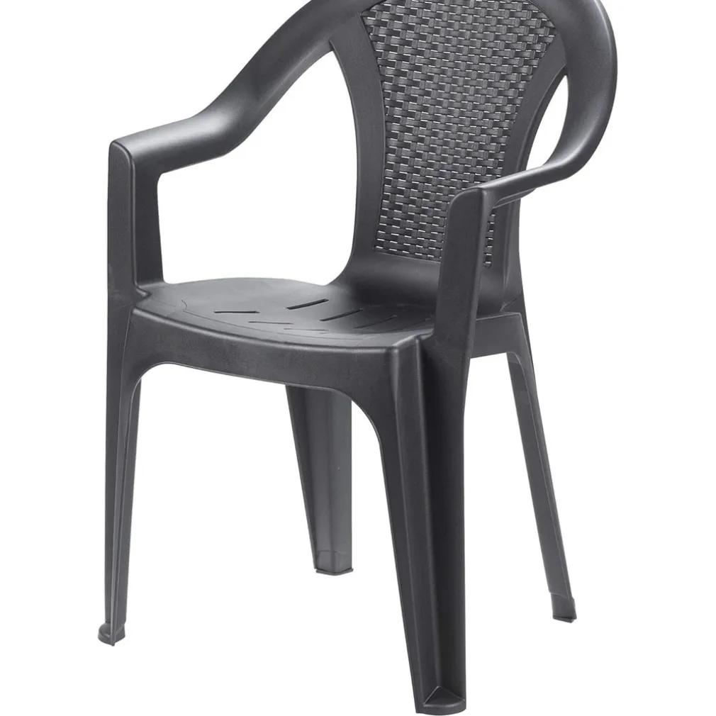 Le sedie Ischia sono realizzate in plastica di alta qualità con una particolare finitura effetto rattan, pensata per riprodurre l’eleganza dei salotti da esterno più raffinati. Il colore Antracite, neutro e moderno, si abbina facilmente a qualsiasi stile d’arredo, mentre la struttura impilabile permette di ottimizzare lo spazio quando non in uso.