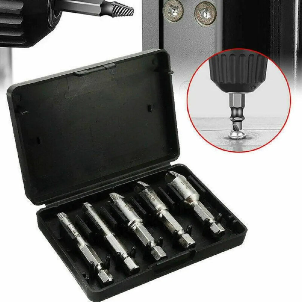 Set 5 estrattori estrattore viti danneggiate spanate prigionieri per trapano