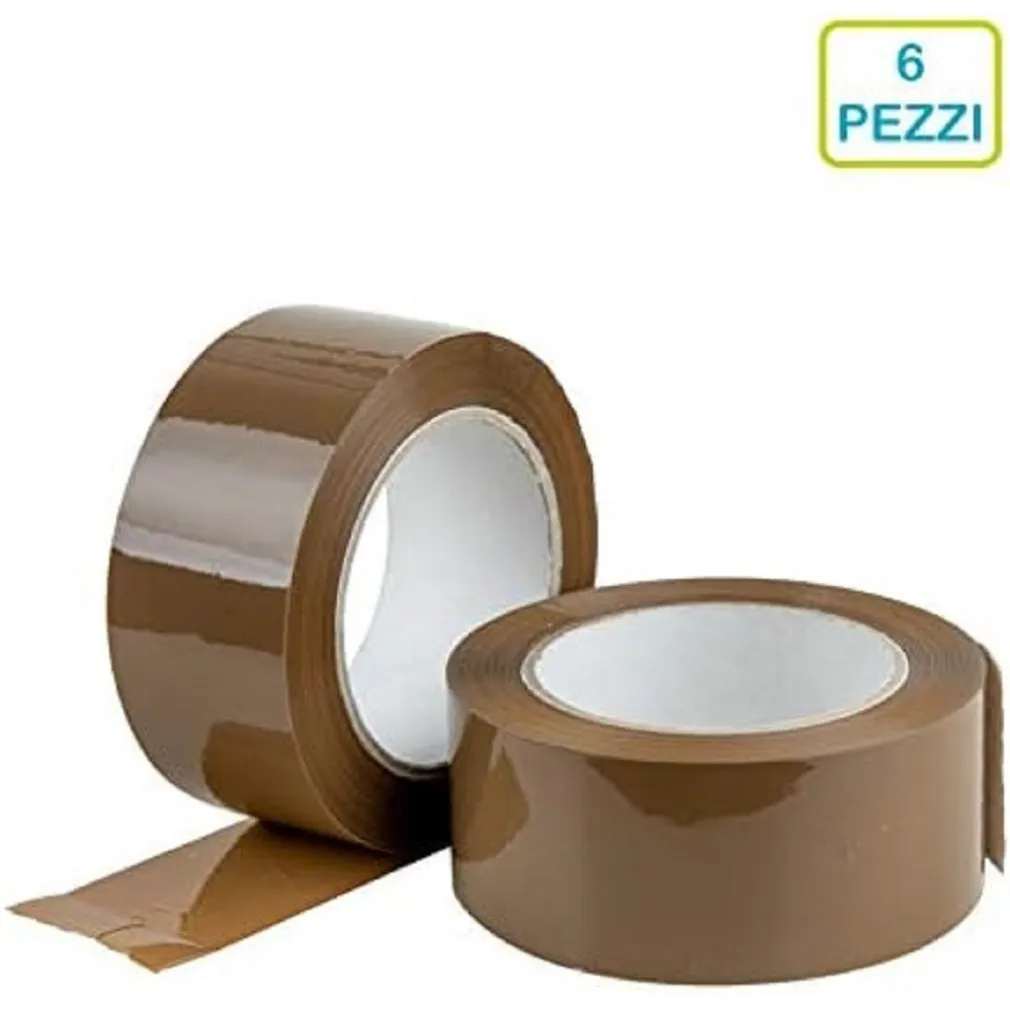 - 6 Rotoli di nastro adesivo in polipropilene, con misura 50 mm x 132 mt, di colore Avana, con spessore 28 Micron, Silenziosi allo strappo. Adatti per lo stoccaggio di lunga durata, offrono ottima resistenza alla rottura e allo strappo, ai raggi UV e al tempo non ingiallendo.