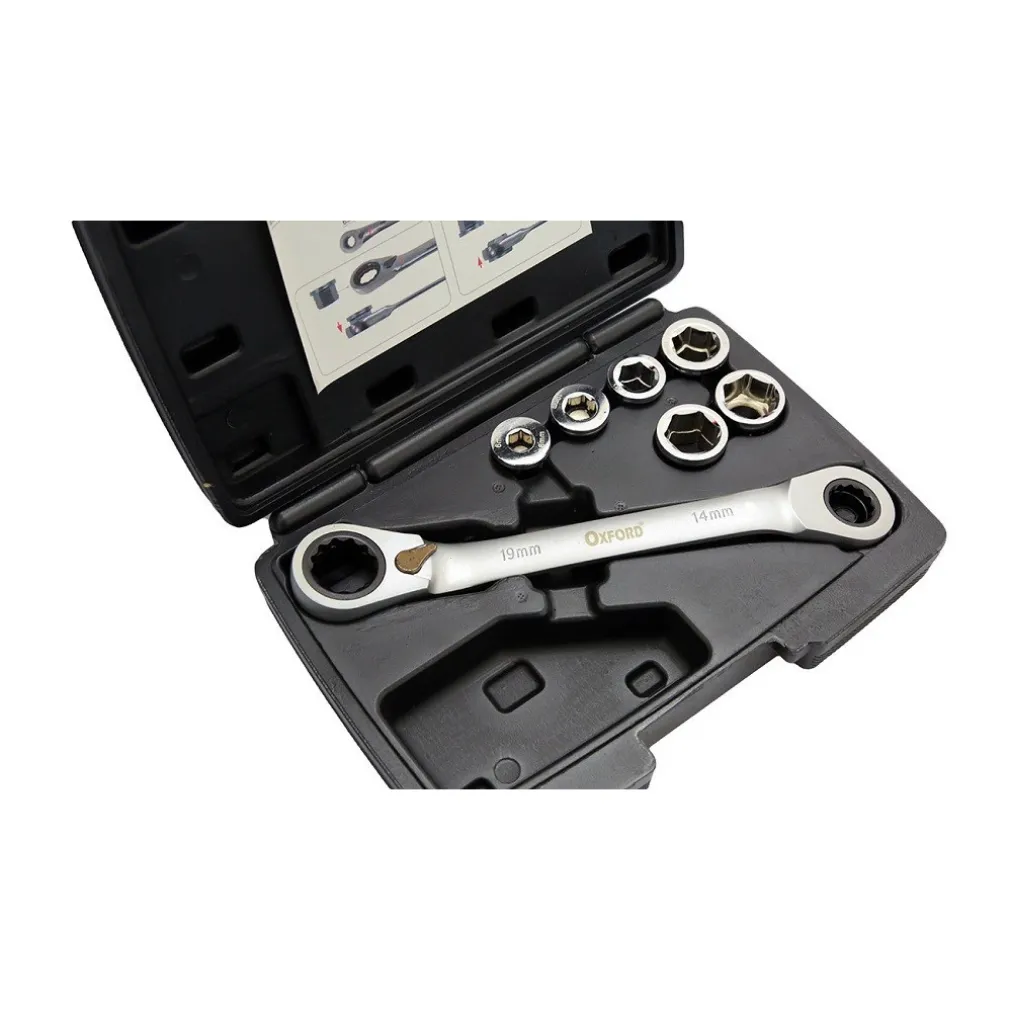 Kit 7 pz chiave 14-19mm 5 innesti 6-19mm cricchetto reversibile esagonale