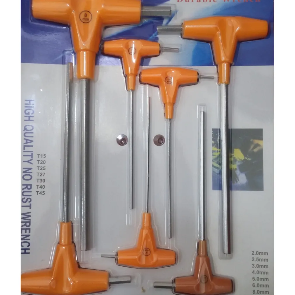 kit di 7 chiavini esagonali a T per professionisti del settore degli infissi o anche per amanti del fai da te e del bricolage.