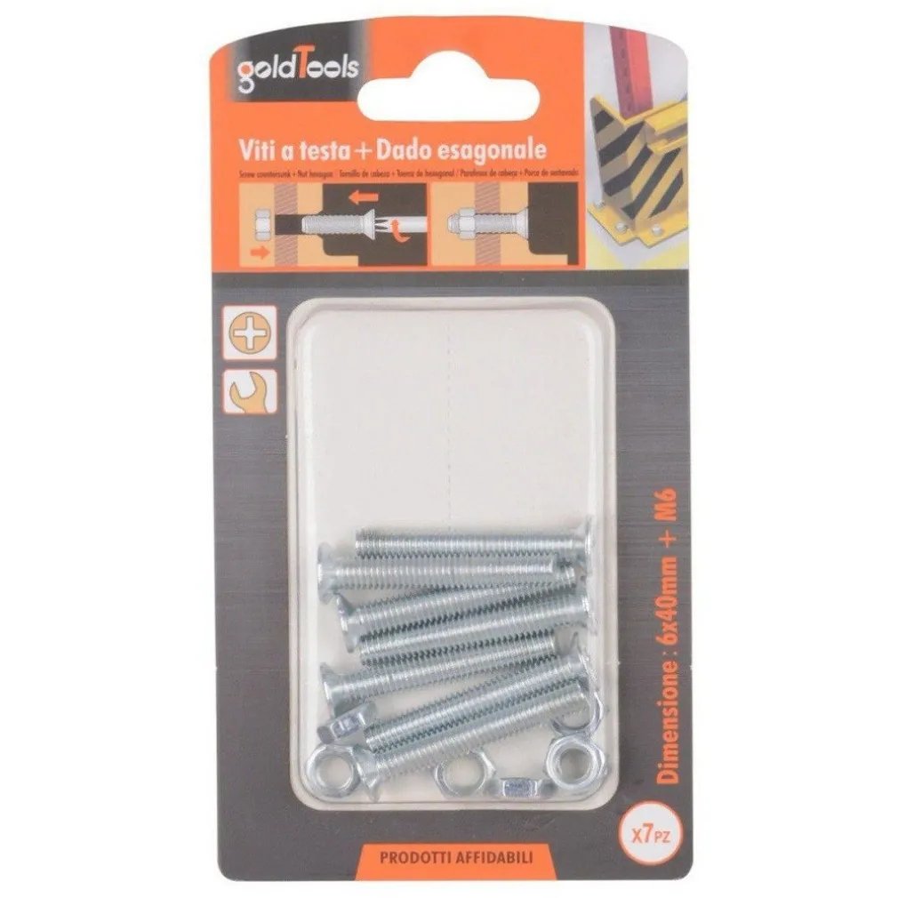 Set 7 Pezzi Viti Vite Testa a Croce Piatte 6 x 40 mm con Dado Esagonale M6 90945