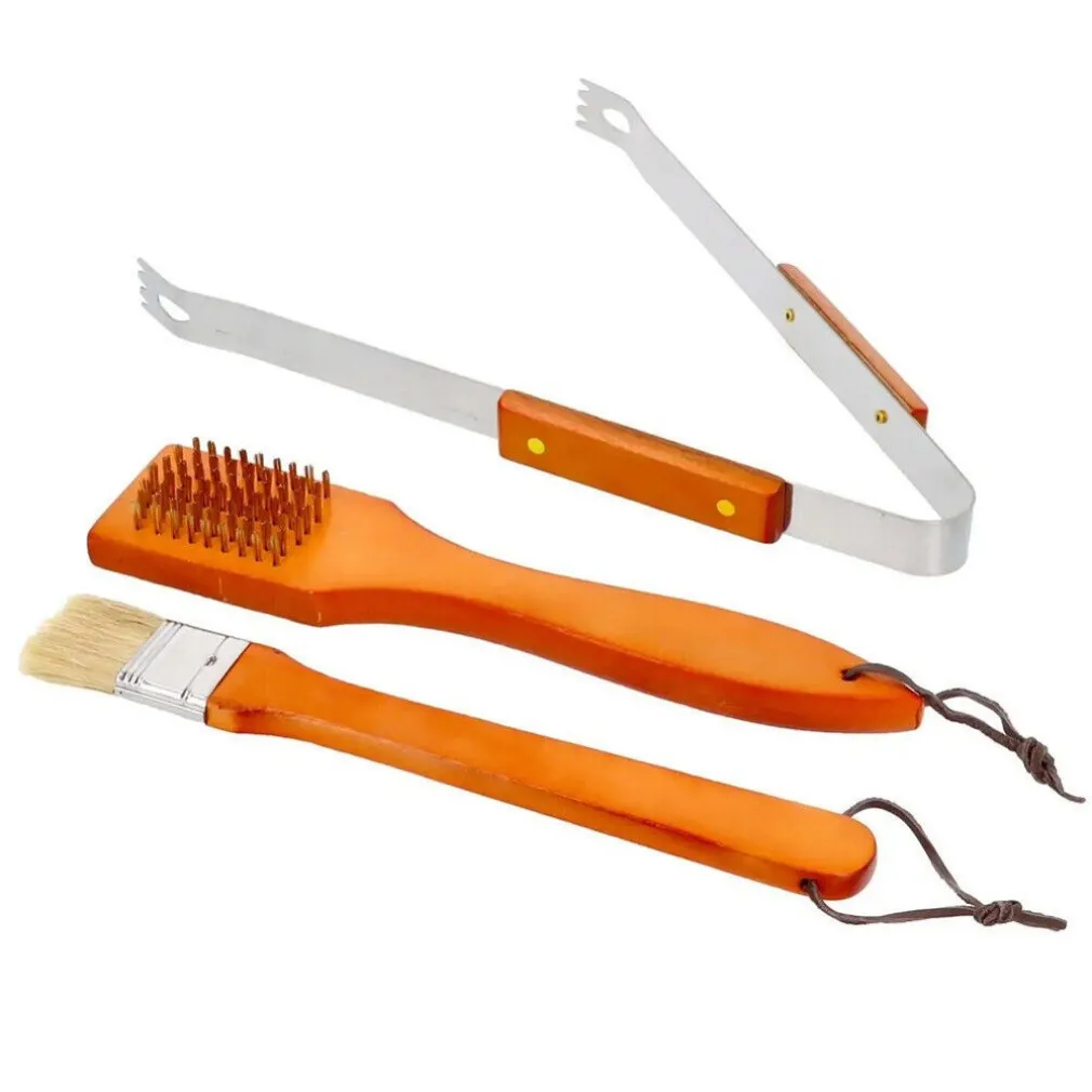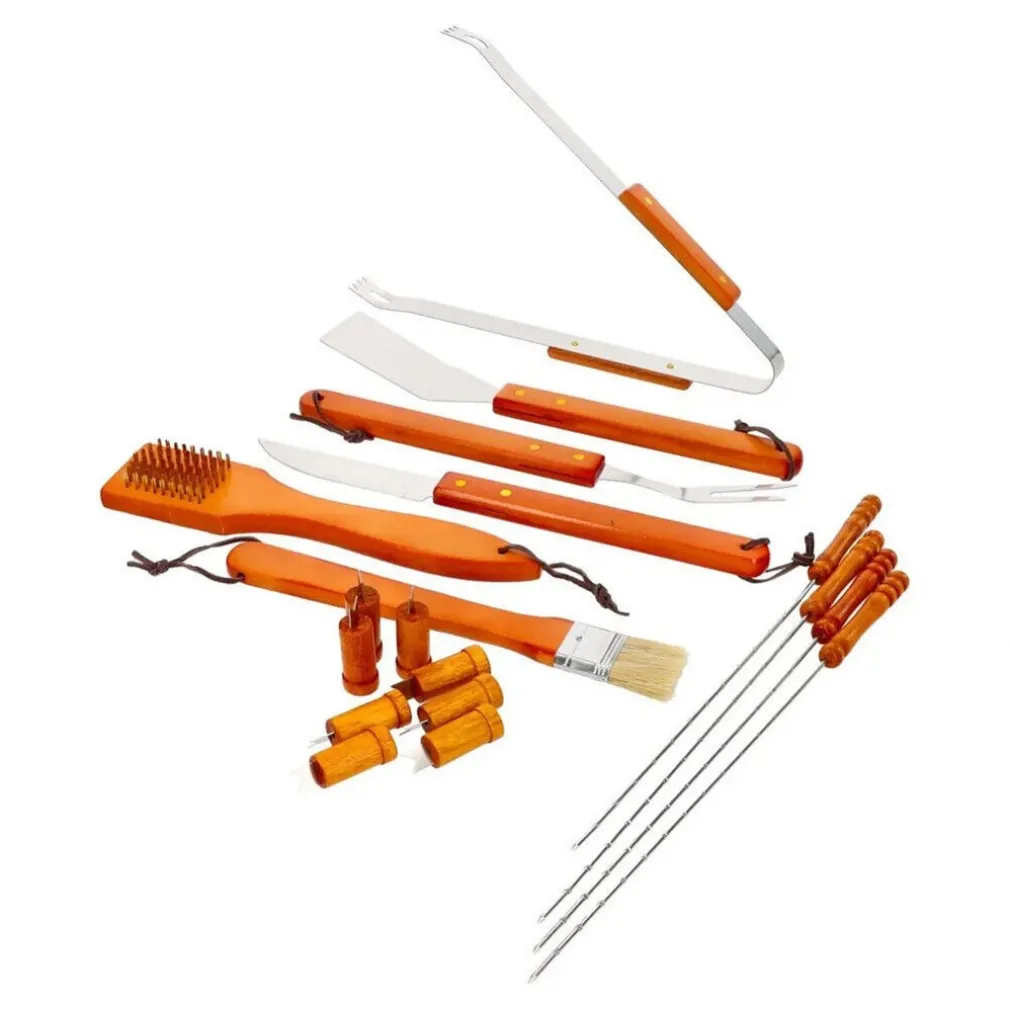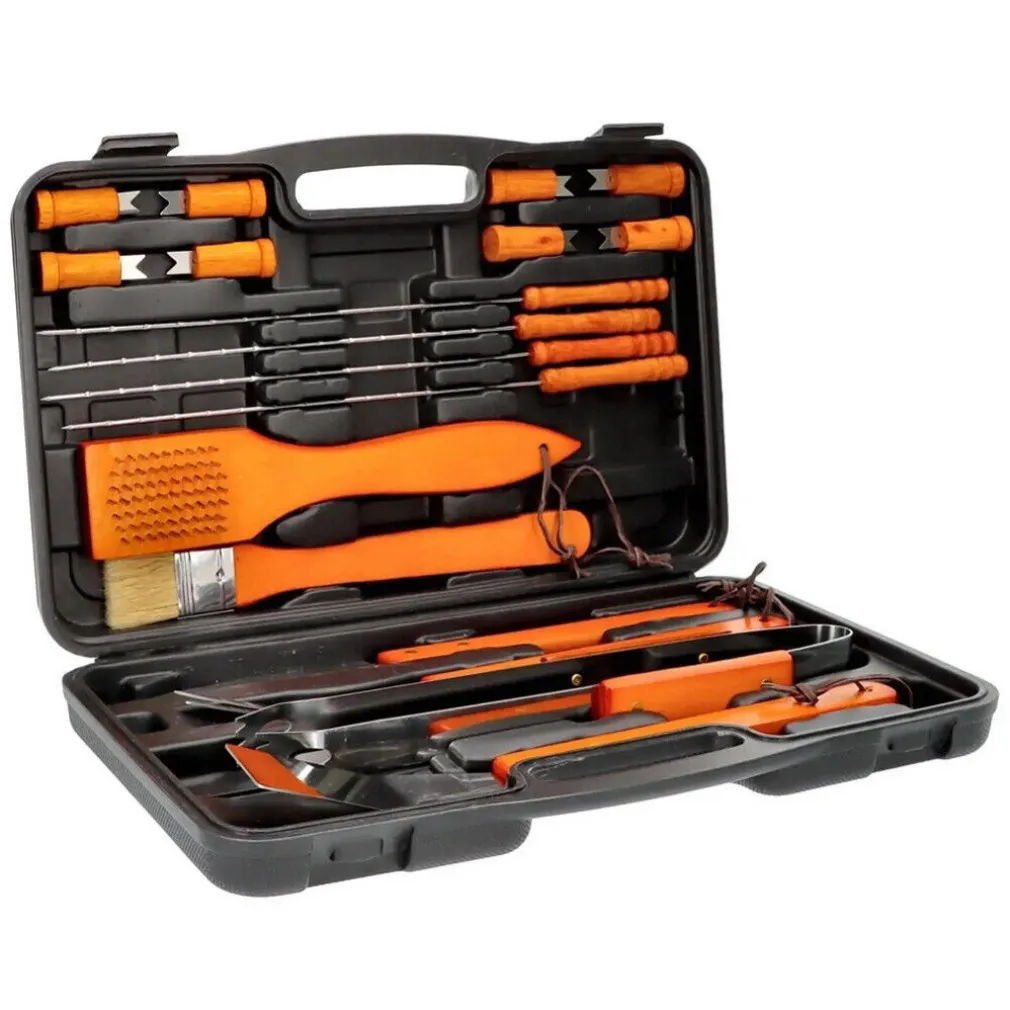 Set Barbecue 18 Pezzi con Valigetta BBQ Grill Acciaio Inossidabile Manico Legno.