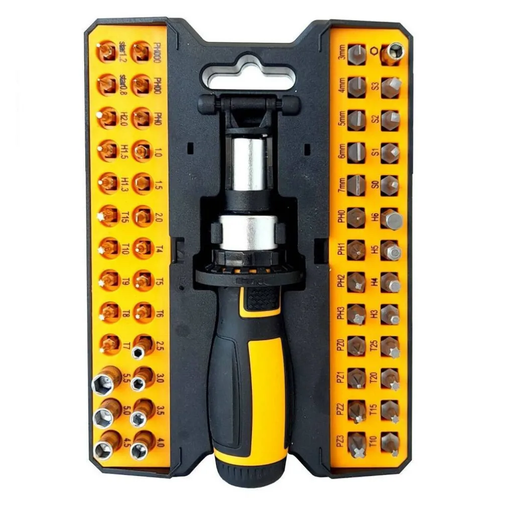 Cacciavite a Cricchetto Multifunzione con 52 Inserti PH, Torx e Taglio Croce – Kit Completo per Ogni Lavoro