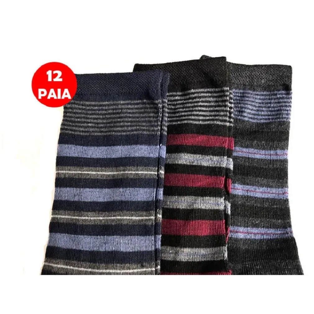 - 12 paia di calze con fantasie a righe su base di colore nero, blu o grigio