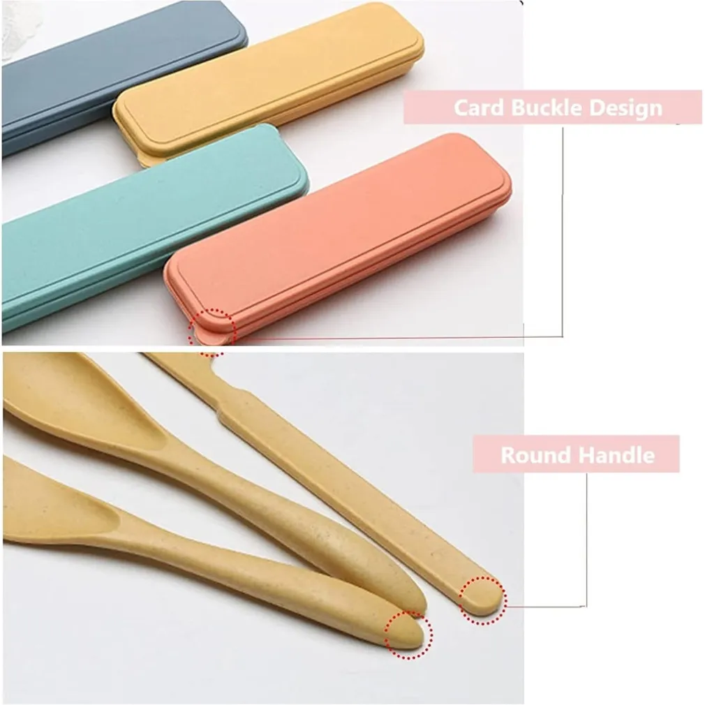 - Ogni set contiene: una forchetta, un cucchiaio, un coltello e una custodia rigida in plastica.