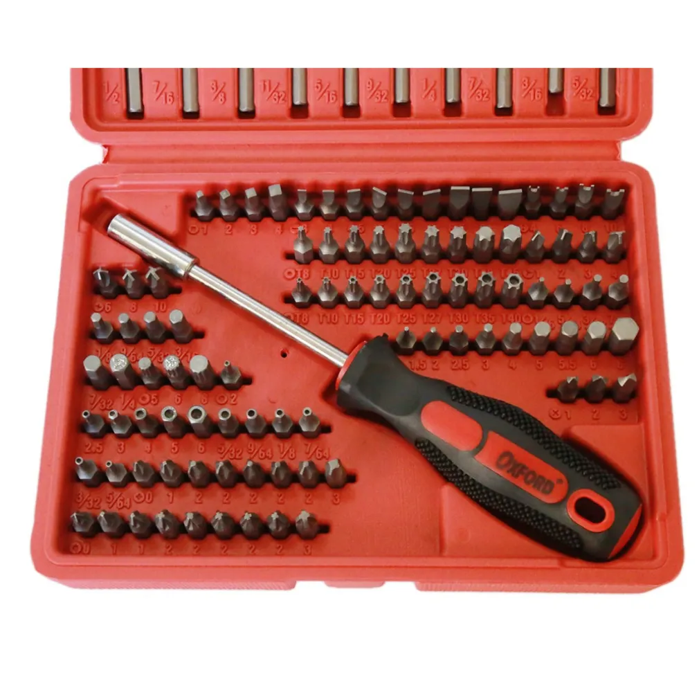 Kit composto da inserti a bussola, torx a taglio, a croce,punte stella a 3 viti, utilissimo per apparecchiature di marche più prestigiose. Dispone di inserti esagonali con punta forata, con punta biforcuta o punta a vortice. Ottima e utilissima valigetta , veramente indispensabile sia da tenere in casa che per il fai da te.