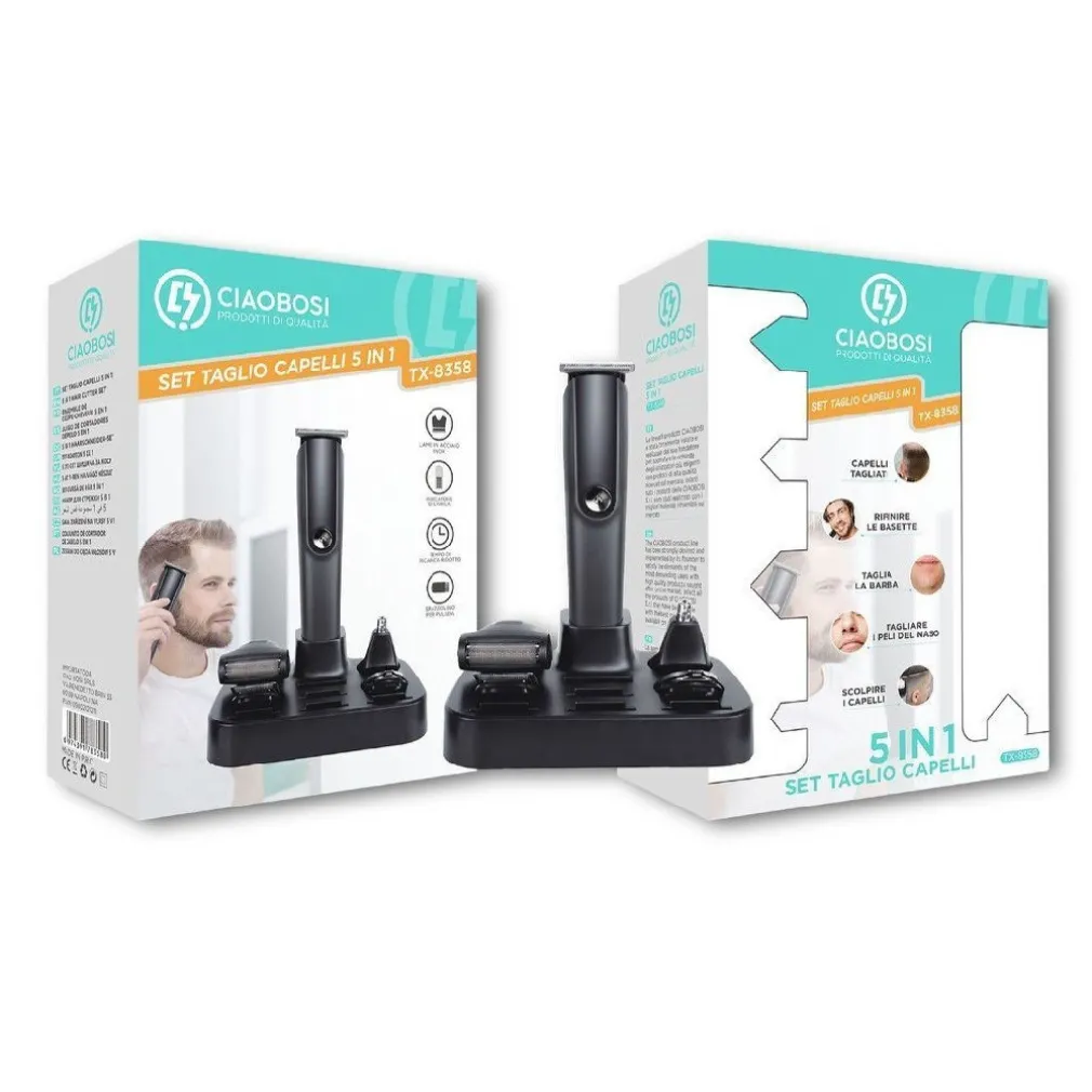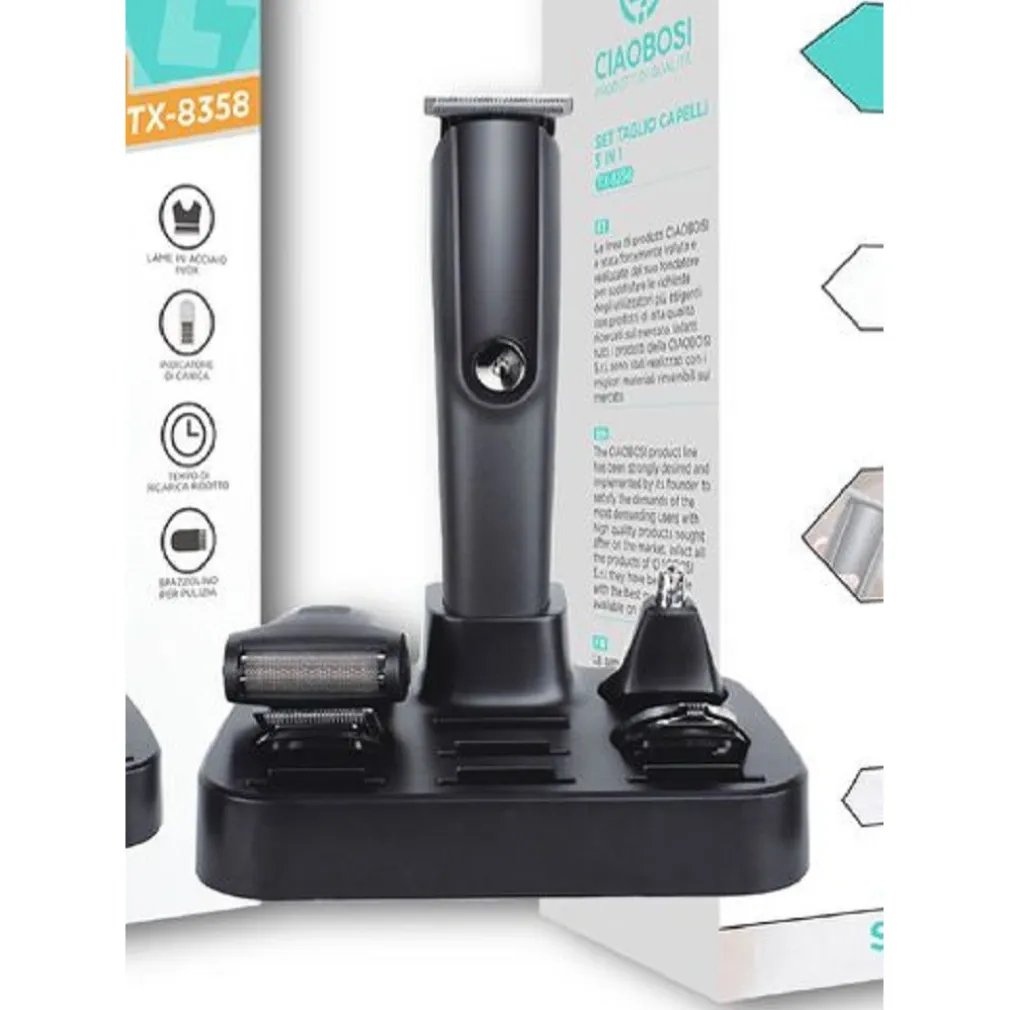 Set taglio capelli rasoio elettrico ricaricabile 5in1 tagliacapelli barba trimmer peli tx-8358
