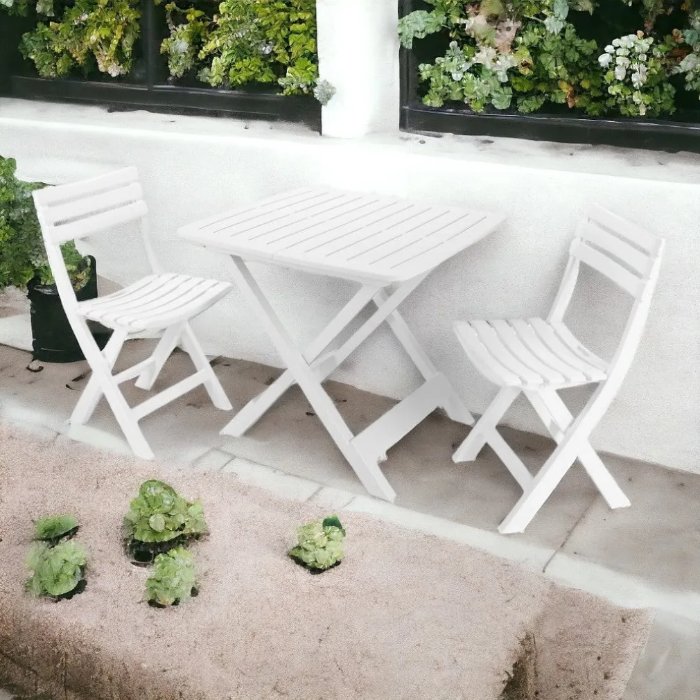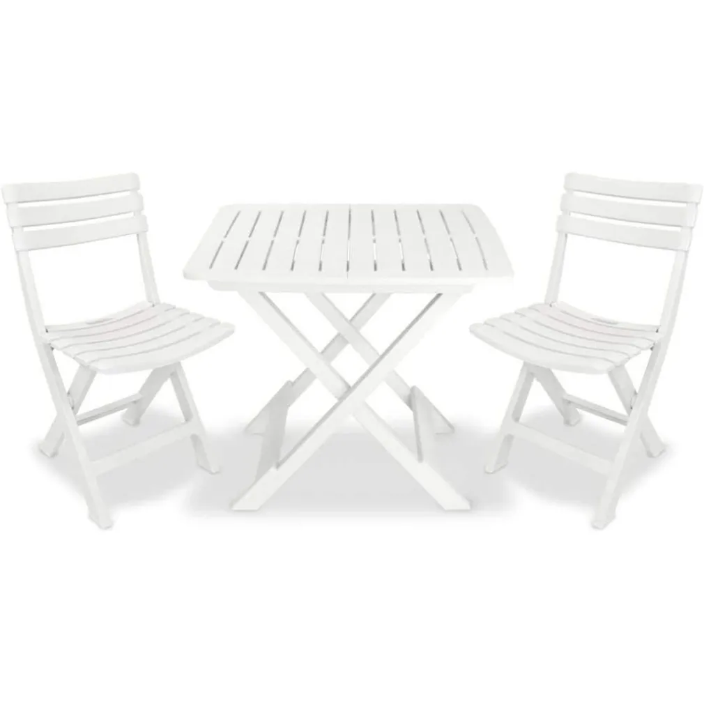 SET SALOTTO CON 2 SEDIE TAVOLO DA GIARDINO PIEGHEVOLE RESISTENTE CAMPING BIANCO 006669