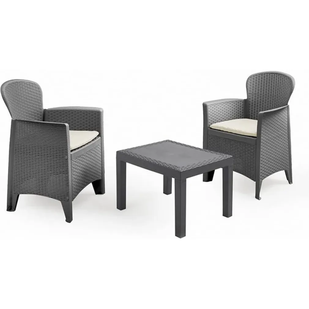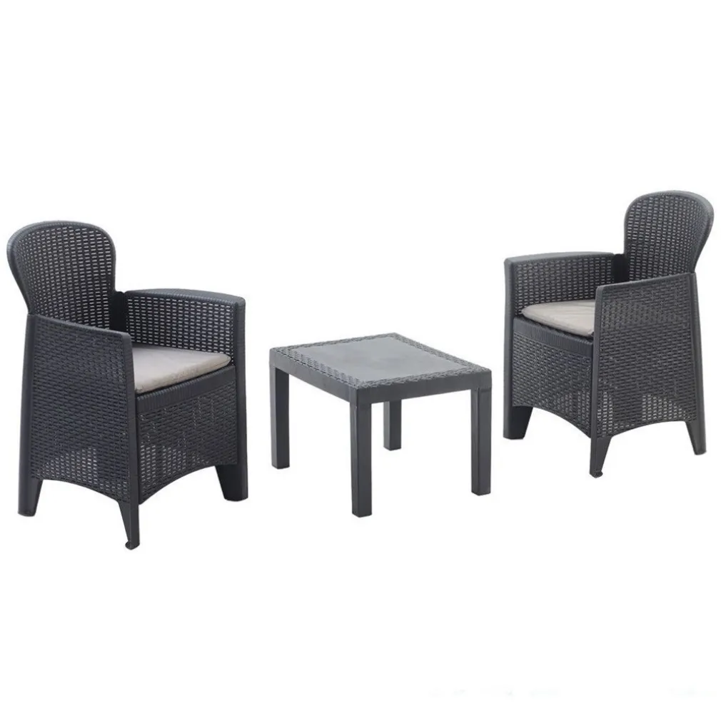 SET AKITA SALOTTO CON TAVOLINO 2 POLTRONE ANTRACITE EFFETTO RATTAN CON CUSCINI GIARDINO 591042 – Eleganza e comfort per il tuo spazio esterno