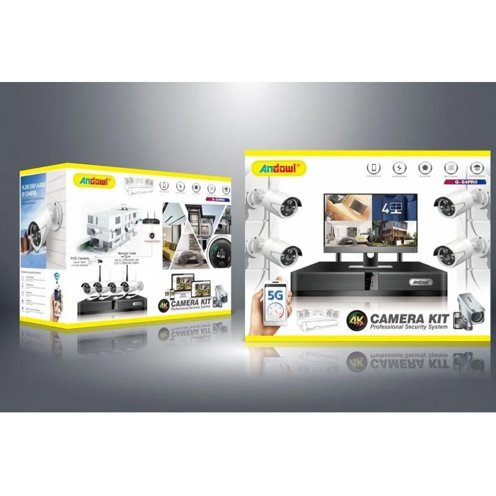 Il sistema di sorveglianza e registrazione Andowl Q-S4PRO è la scelta perfetta per la sorveglianza del tuo spazio. Con il set potrai vedere da lontano la tua casa, il tuo magazzino, ma anche qualsiasi altro tuo spazio, utilizzando il tuo cellulare o tablet. Ha un rilevatore di movimento e ricevi una notifica immediata sul tuo cellulare o e-mail. Andowl Q-S4Pro è la scelta migliore perché funziona efficacemente con la sorveglianza 24 ore su 24 per la sicurezza e la sorveglianza della tua casa e del tuo lavoro. Visualizza (e registra a distanza) la tua casa, i tuoi figli, i tuoi genitori anziani, il tuo ufficio, il tuo negozio, il tuo magazzino, il tuo garage, il tuo cottage, anche se sei all’estero.