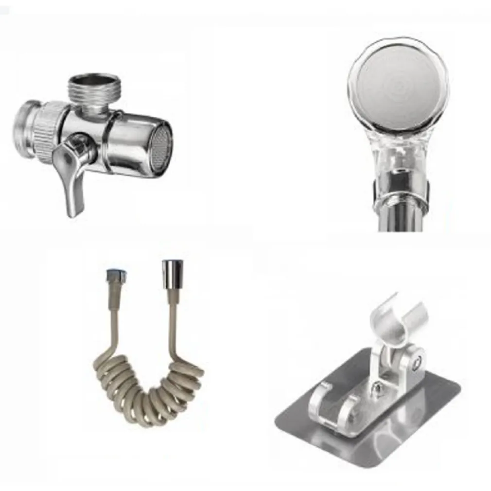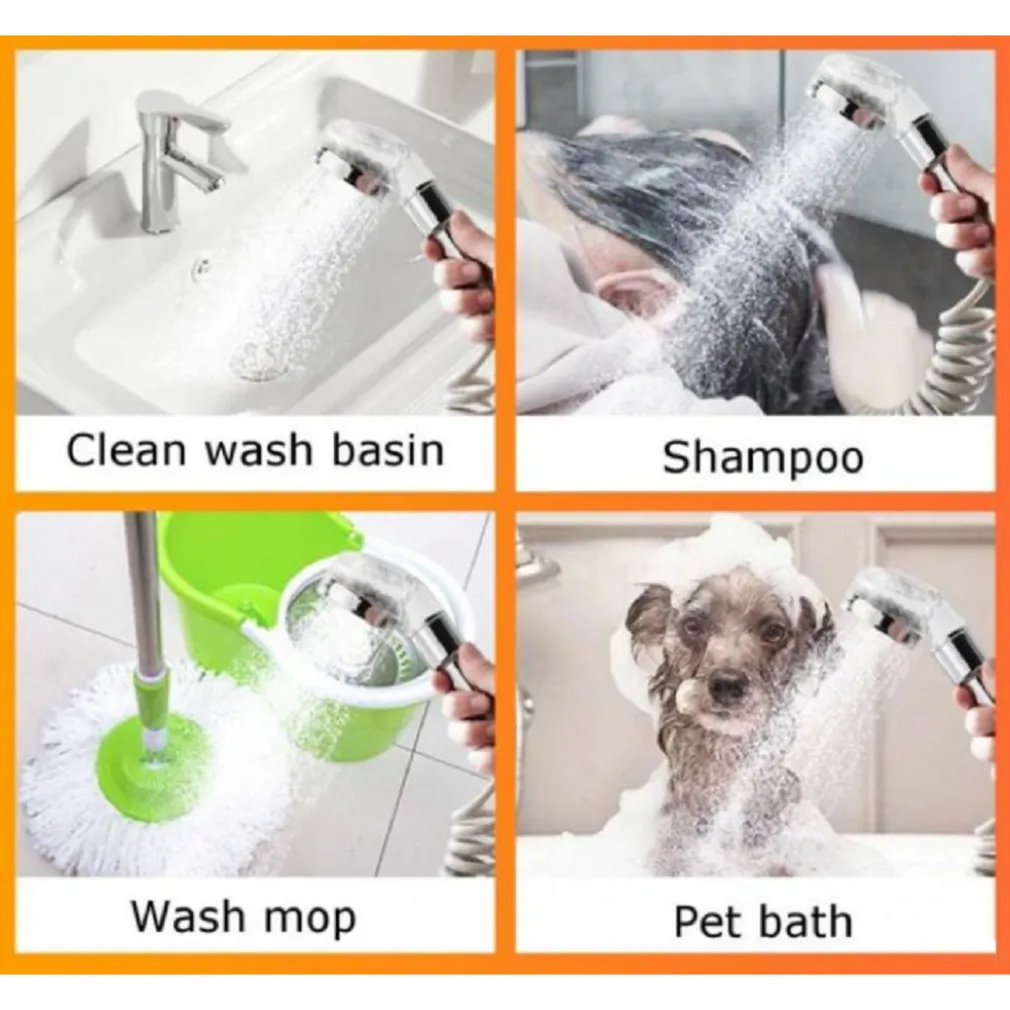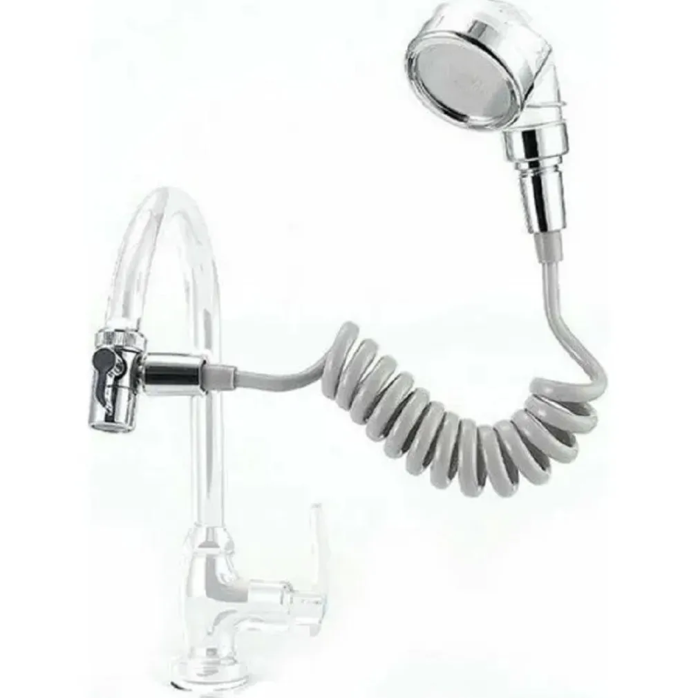 Soffione doccia compatibile con la maggior parte dei rubinetti del bagno o della cucina. Con tubo telescopico in gomma così puoi dirigere l’acqua dove vuoi! Elevata resistenza alla pressione e ottimo utilizzo. È adatto per rubinetti con filtro estraibile e dispone di una valvola deviatrice a tre vie. Ha un interruttore per passare dal flusso d’acqua nel rubinetto o nel soffione della doccia. Usalo per lavare i capelli, prendersi cura di anziani o bambini, fare il bagno agli animali domestici, lavare i piatti nel lavandino e molto altro. Installazione facile e veloce, senza bisogno di un idraulico. Ideale anche per l’uso in un parrucchiere. Staffa da parete inclusa. Lunghezza spirale: 1,5 m.