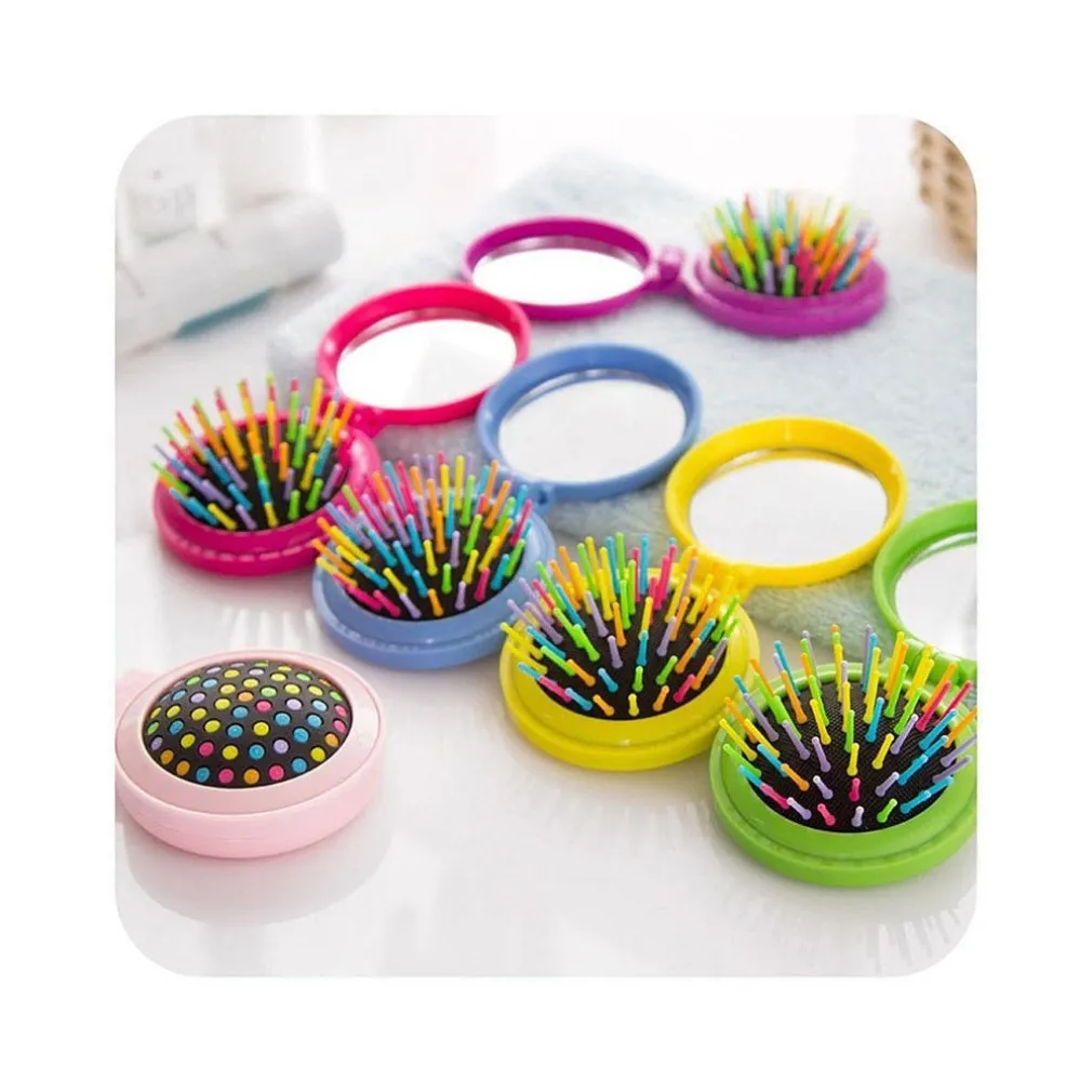 Spazzola da Viaggio con Specchio Richiudibile Pieghevole Pettine per Borsa Donna