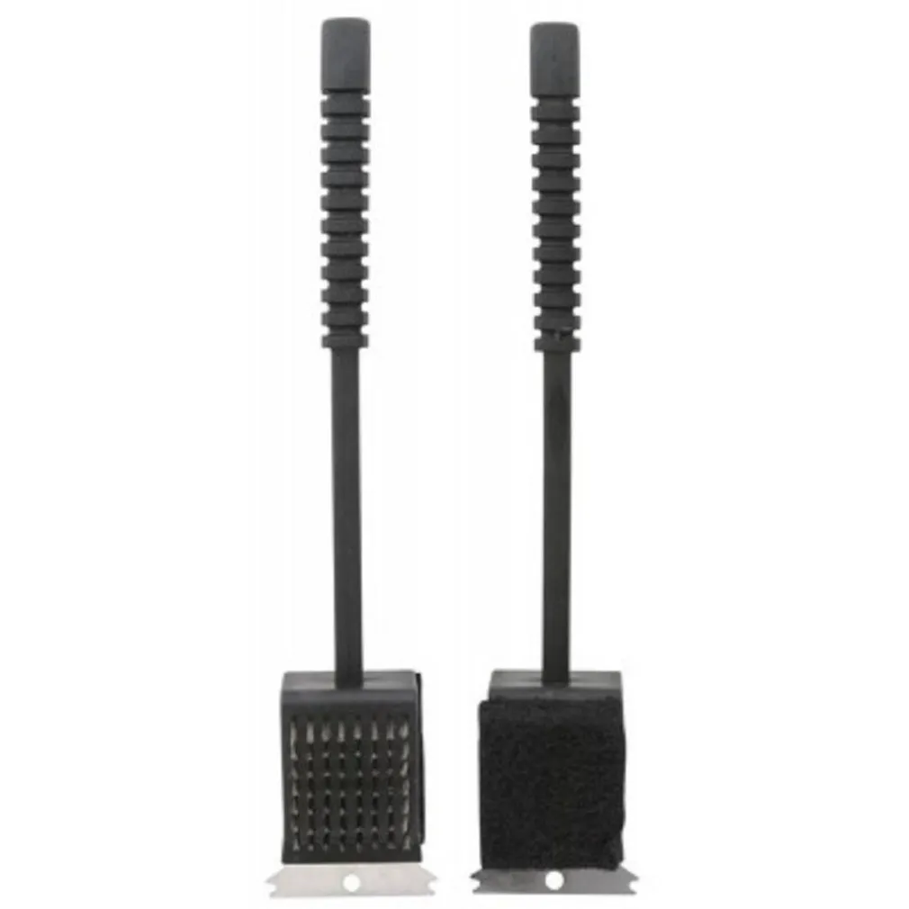 Utensile tuttofare per spazzolare, strofinare e raschiare la griglia del barbecue. Dopo ogni utilizzo del barbecue la griglia deve essere pulita per bene in modo che sia pronta per essere utilizzata la prossima volta. Questa spazzola per grill 3 in 1 rende la pulizia della griglia facile, veloce ed efficiente. Accessorio per la pulizia del barbecue composto da una spazzola in acciaio, una spugna e un raschietto. In questo modo è possibile pulire le griglie con solo tre passaggi: prima usare il raschietto per rimuovere lo sporco duro, quindi utilizzare la spazzola per una pulizia accurata di tutta la griglia e infine passare la spugna sopra la griglia per la rimozione di resti di grasso e fuliggine. Spazzola composta da setole e raschietto in acciaio e spugna. Dotata di un comodo manico in plastica lungo 37 cm per facilitare la pulizia della griglia.