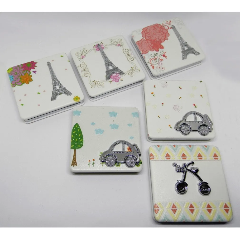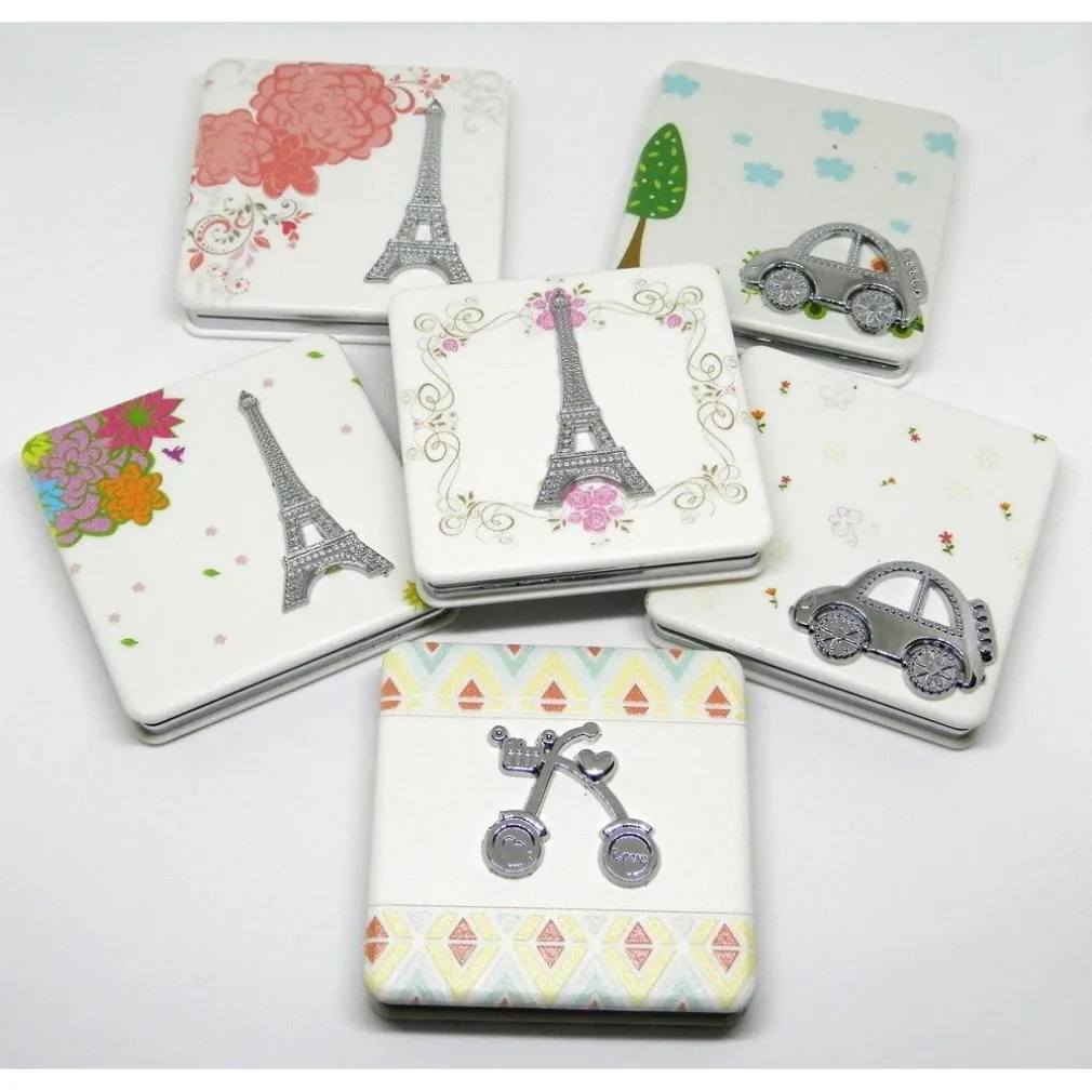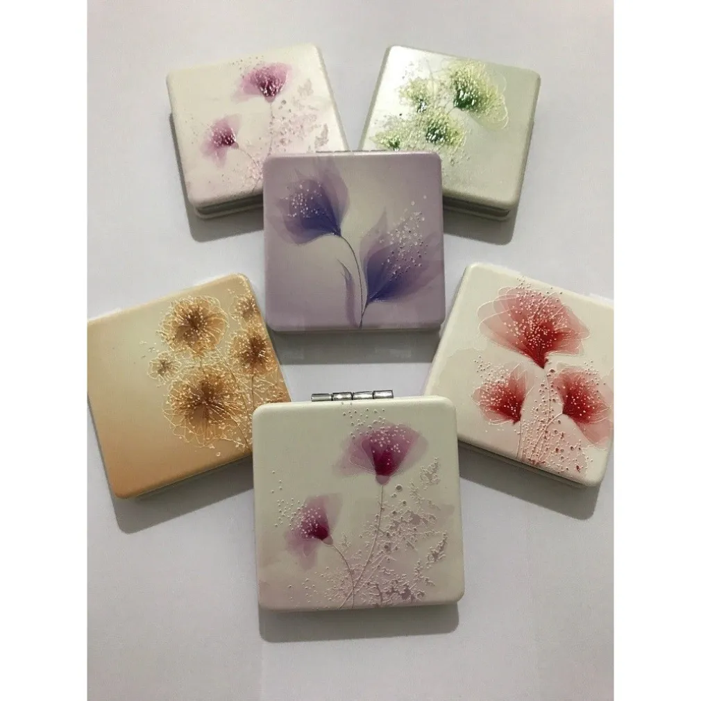 Un delizioso specchietto da borsetta, colorato e romantico con specchi su entrambi i lati di varie fantasie.