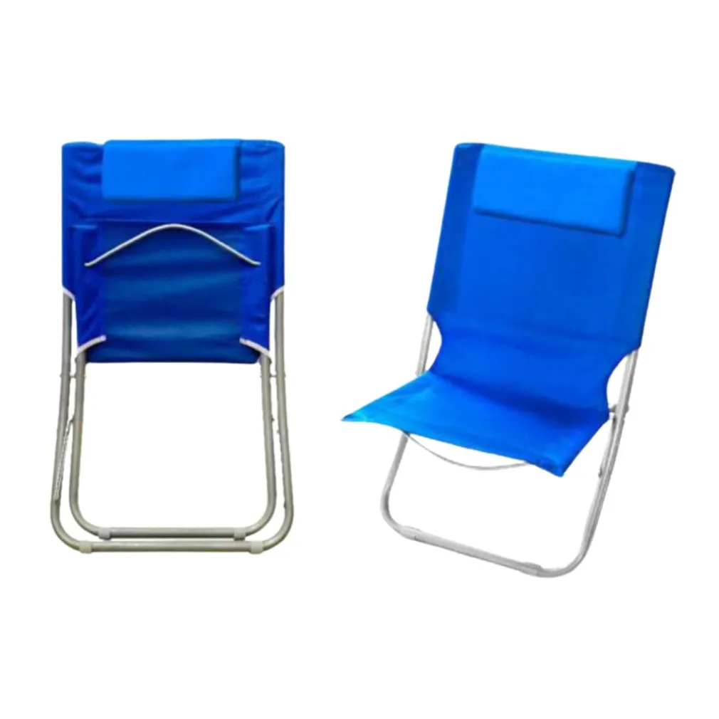 Questa sedia da spiaggia è dotata di cuscino poggiatesta, struttura robusta e leggera, oltre a un design pieghevole per facilitarne il trasporto e lo stoccaggio.