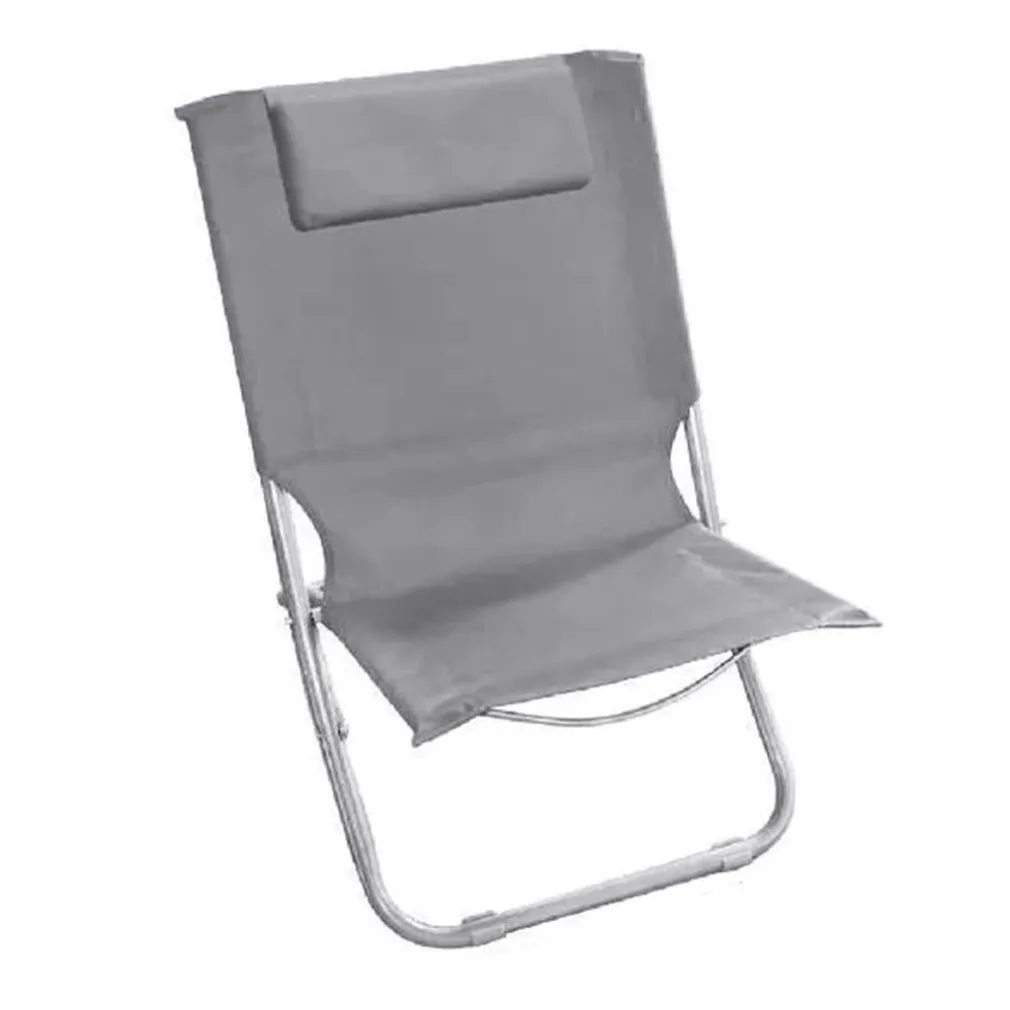 Spiaggina con Cuscino per Testiera Grigio 57x47x95 cm – Pieghevole e Portatile