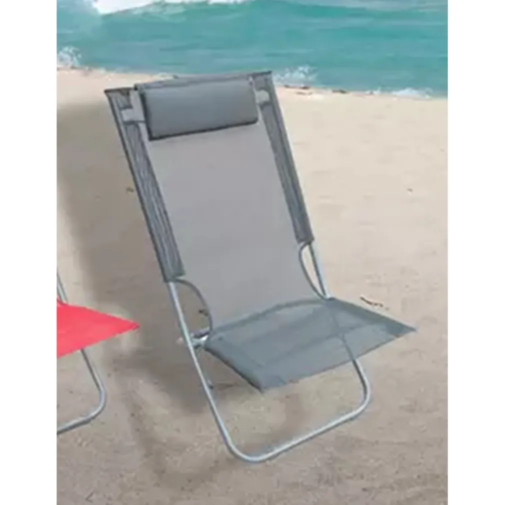 1 x SPIAGGINA CON CUSCINO TESTIERA GRIGIO TEXTILENE 57X47X95CM PIEGHEVOLE PORTATILE 28103
