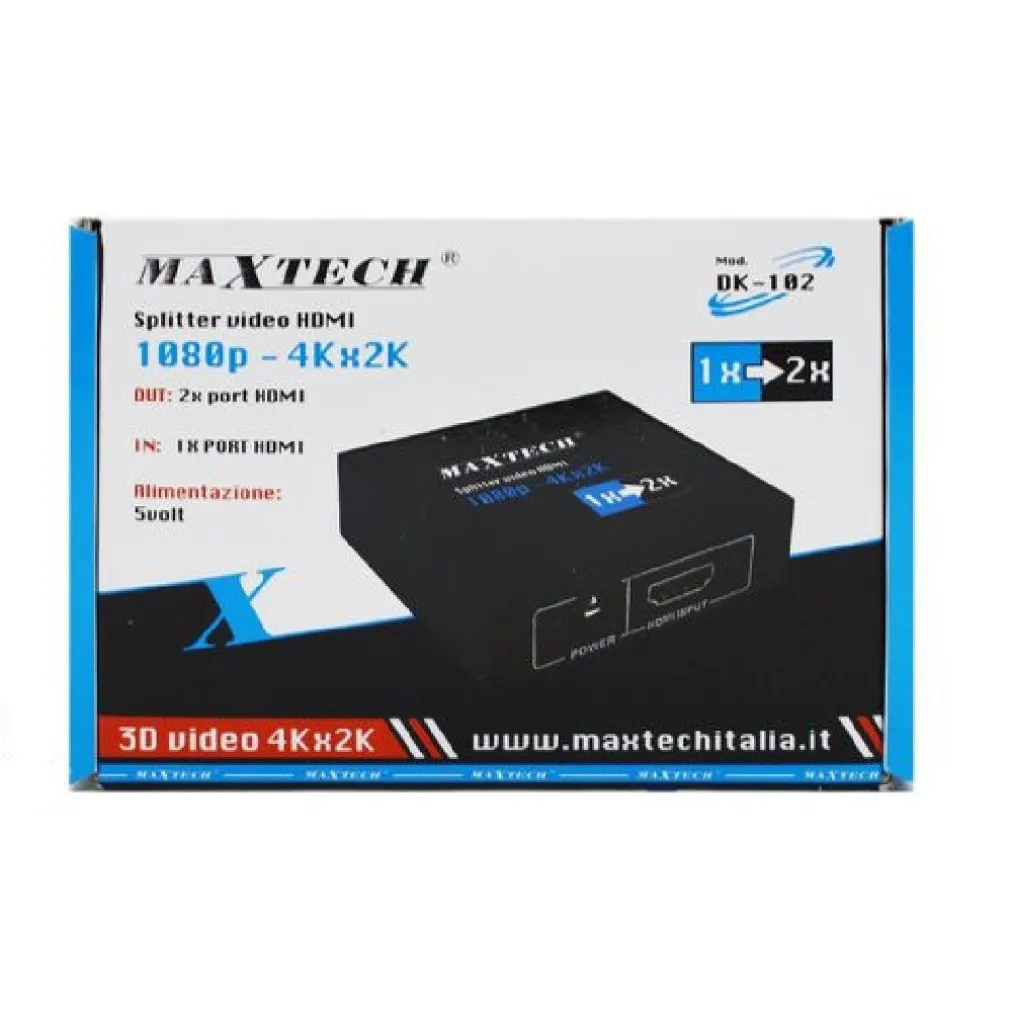 - Splitter HDMI che permette di inviare contemporaneamente a 2 dispositivi come TV, PROIETTORE, MONITOR, il segnale di un dispositivo di riproduzione HDMI.
