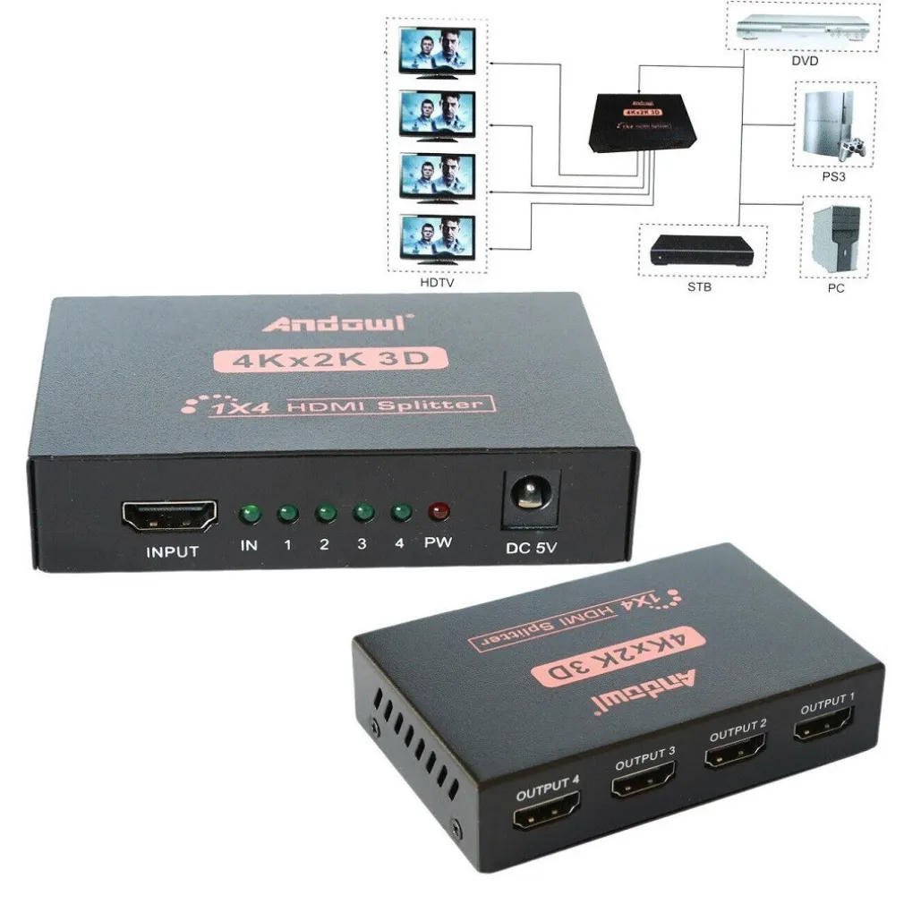 4 Uscite HDMI Amplificate: Progettato con quattro uscite HDMI, questo splitter offre una connettività avanzata, supportando sia la risoluzione 4K che 2K. La sua capacità di amplificazione assicura una trasmissione di segnali potente e stabile su ogni porta.