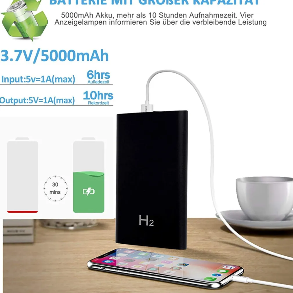Power Bank dalle dimensioni ridotte, con capacità di batteria di grandi dimensioni e inoltre spy cam inclusa ideale per registrare in qualsiasi momento senza destar sospetto. Questo dispositivo non è solo un semplice caricabatterie portatile; è una vera e propria fotocamera spia, capace di registrare video in HD 1080P con immagini cristalline. Grazie alla sua slot TF CARD (non inclusa), può memorizzare un grande volume di dati.