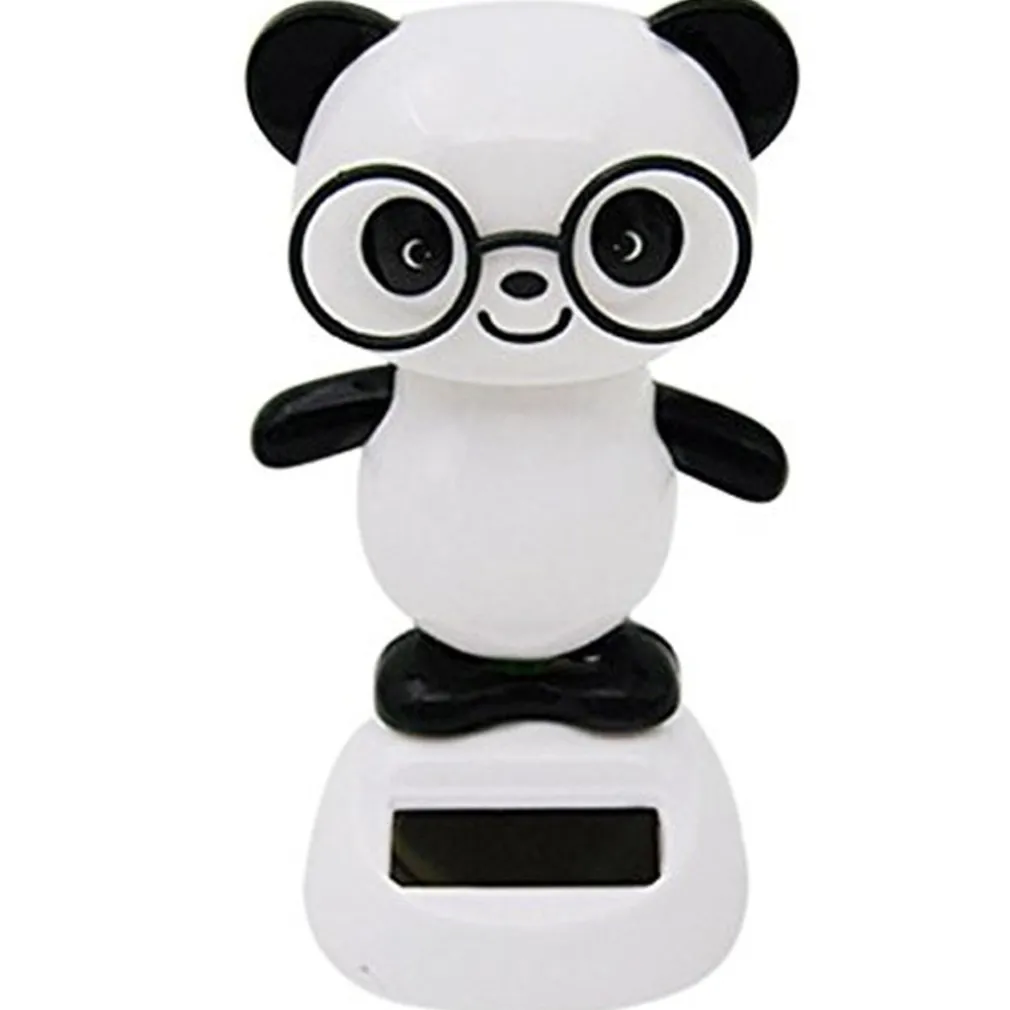 STATUETTA OSCILLANTE AD ENERGIA SOLARE panda OCCHIALI DONDOLO MOVIMENTO PER CRUSCOTTO AUTO SCRIVANIA UFFICIO colore casuale