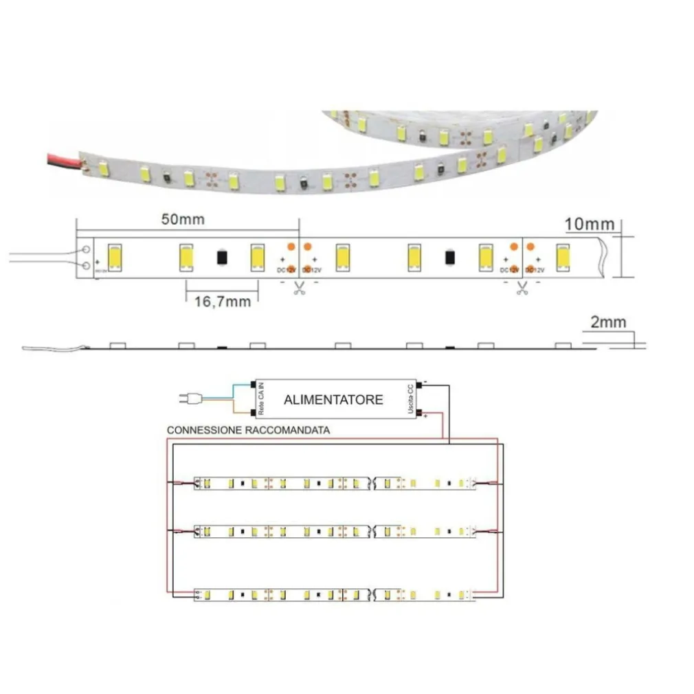 Può essere tagliata ogni 3 led, mediamente ogni 5 cm