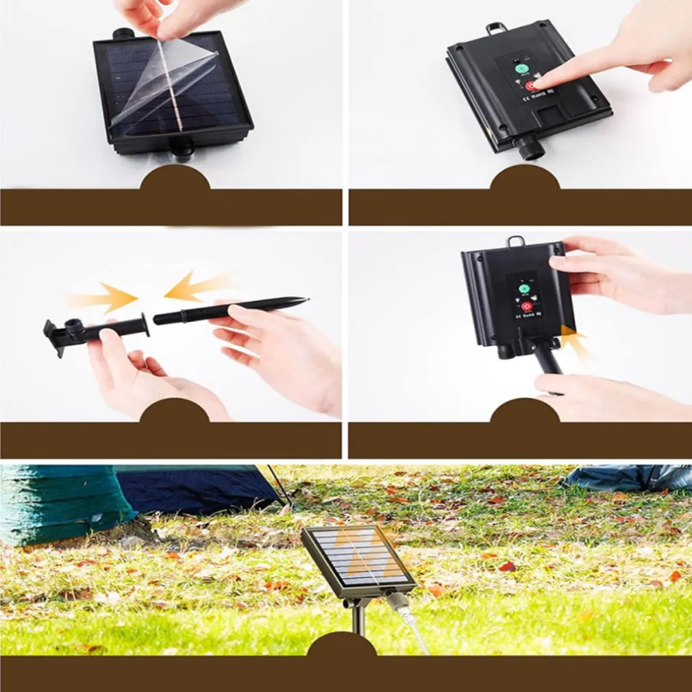 Dispone di otto modalità di giochi di luce: luce fissa, lampeggiante, dissolvenza, flash, combinata e altre varianti dinamiche, tutte selezionabili dal telecomando o dal tasto posteriore del pannello solare.
