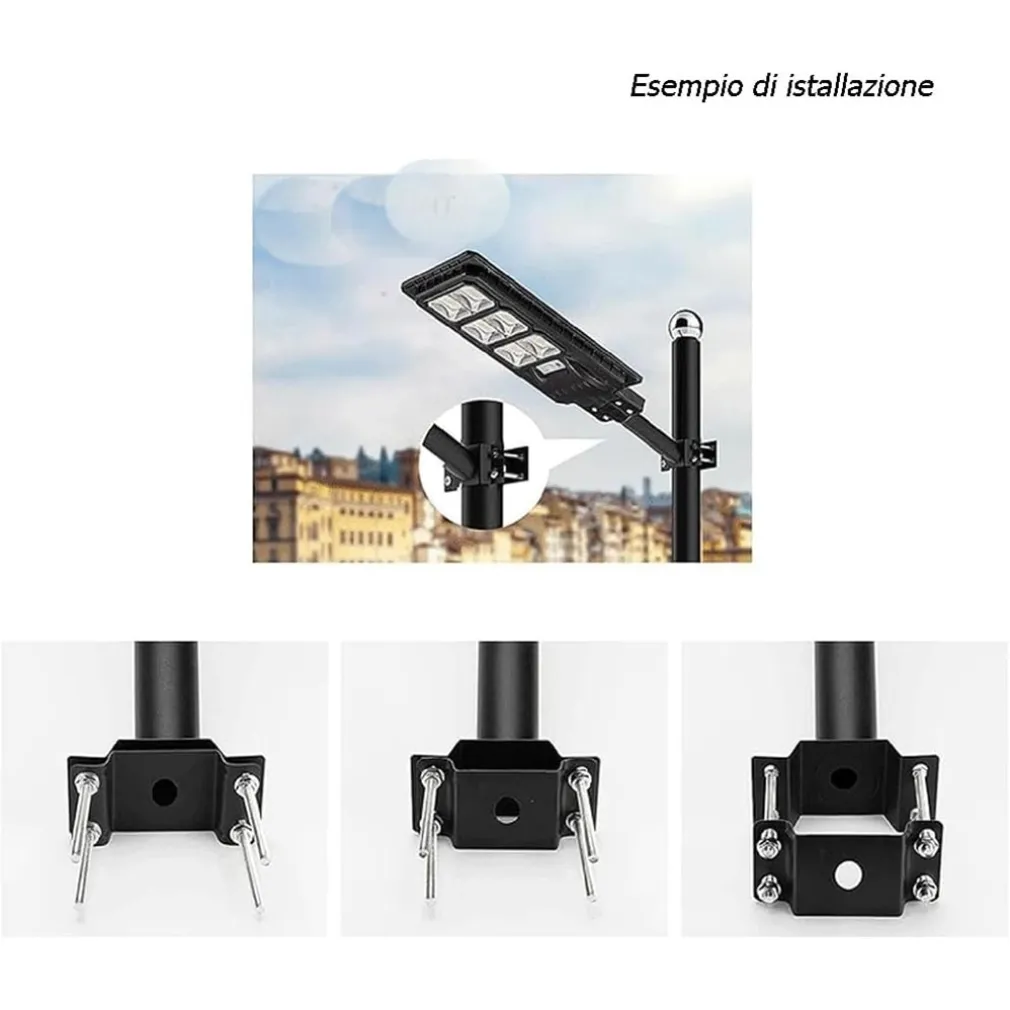 Il nostro supporto a cravatta in acciaio rappresenta la soluzione definitiva per chi desidera un’installazione solida e duratura. La struttura robusta e la facilità di montaggio lo rendono perfetto sia per impianti di illuminazione pubblica che per applicazioni private come giardini, cortili o parcheggi.