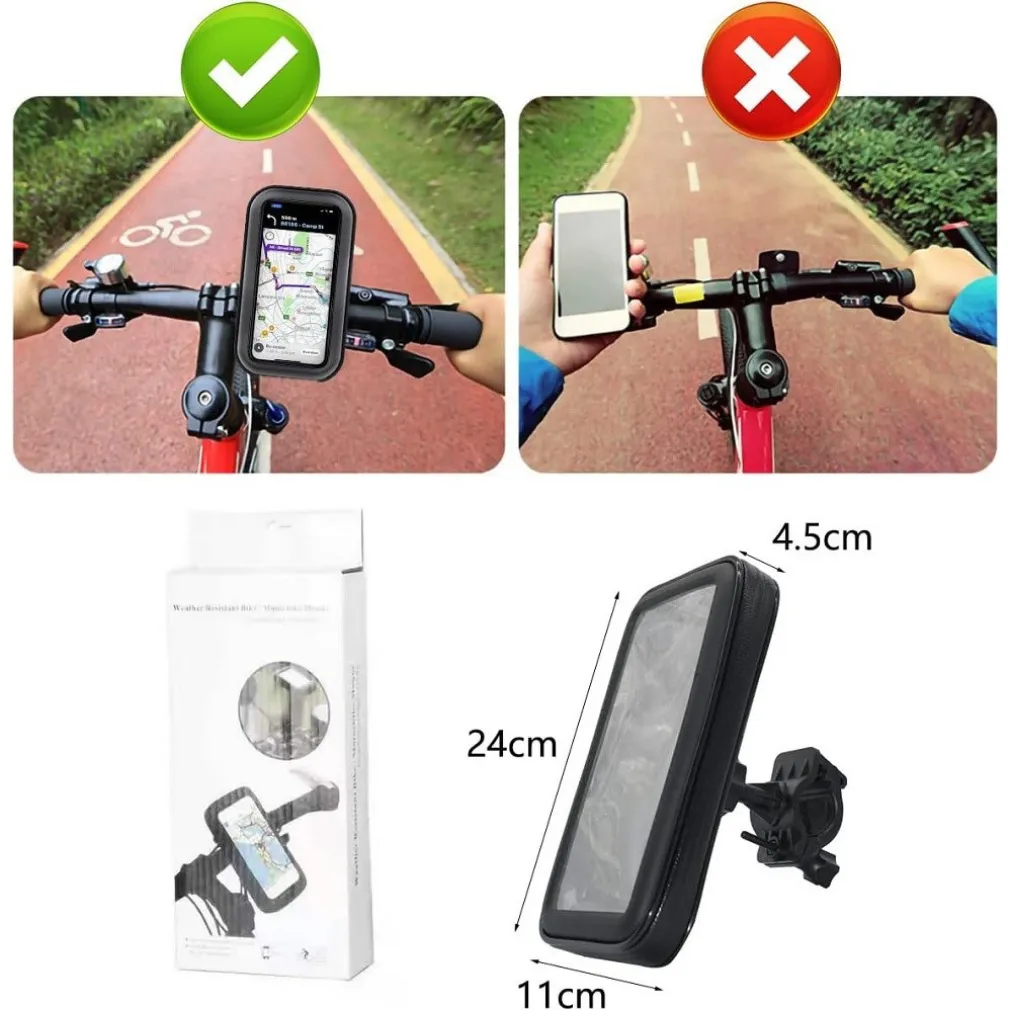 Il 360° Moto Impermeabile Porta Cellulare è montato stabilmente sul manubrio, che è sicuro e anti-vibrazione e la borsa del telefono può essere facilmente rimossa dalla staffa di montaggio, così puoi portarla con te. Il tessuto e la cerniera sono impermeabili, proteggendo i tuoi oggetti bagnati nei giorni di pioggia. Ma non è consigliabile immergersi a lungo sotto la pioggia battente.