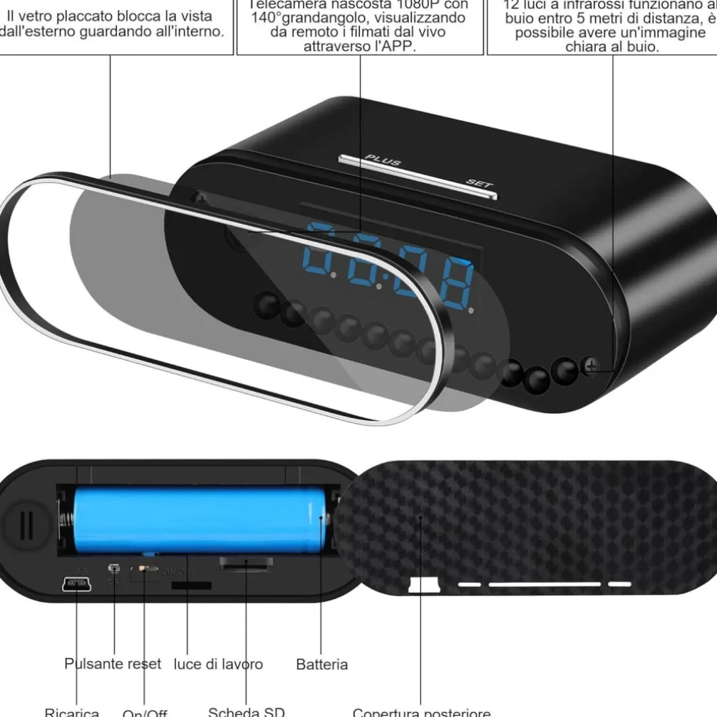 Scopri la nostra rivoluzionaria Sveglia Orologio con Telecamera Spia Nascosta! Questo dispositivo multifunzionale non solo ti aiuta a svegliarti la mattina, ma ti offre anche la tranquillità di una casa sicura grazie alla sua telecamera spia di alta qualità.