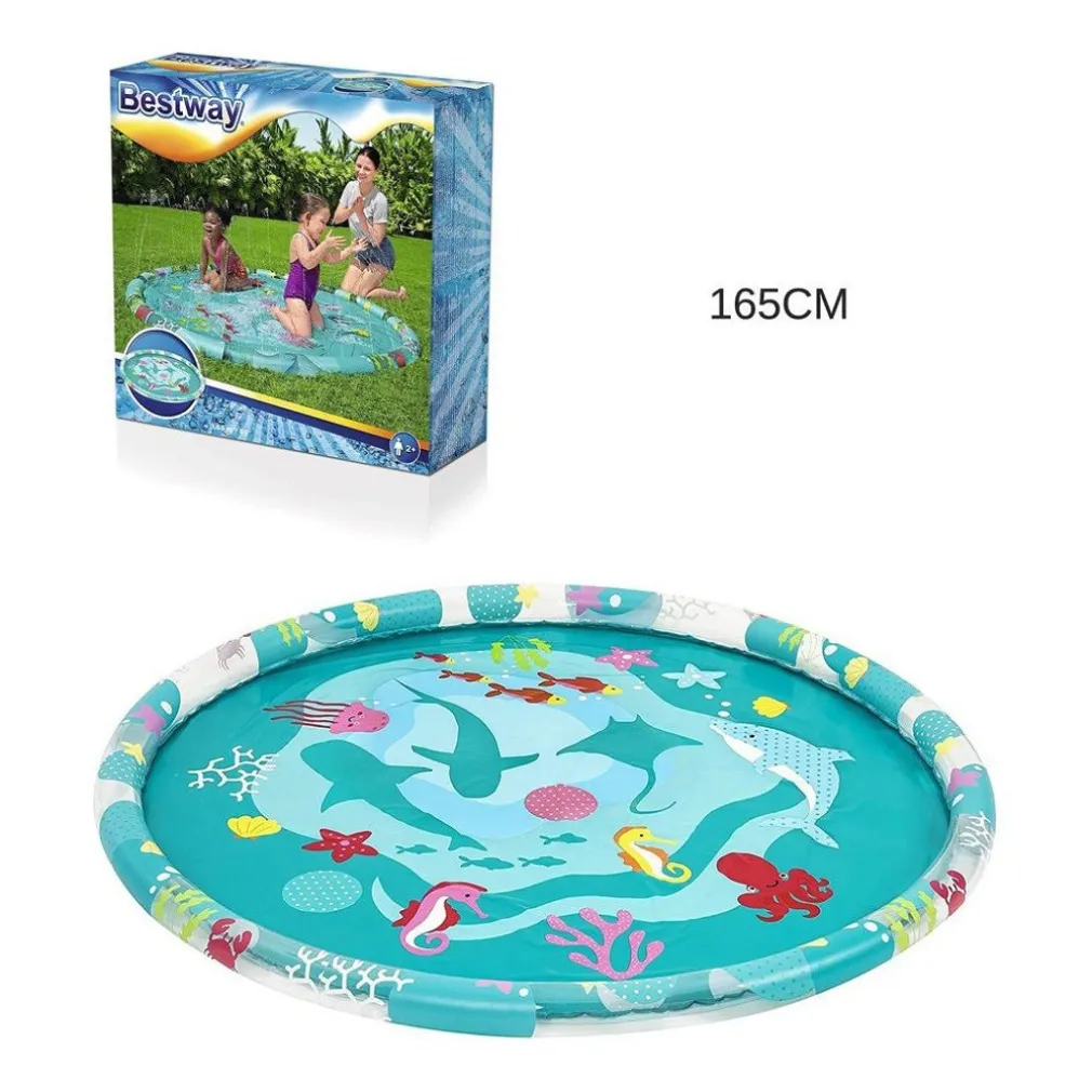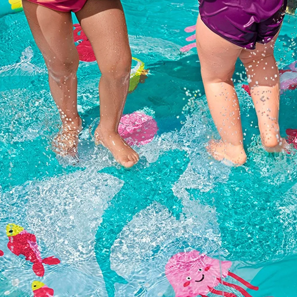 Niente di meglio, contro l’afa estiva, che sguazzare nell’acqua rinfrescante! Grazie al tappetino Splash hai un piacevole effetto fontana, semplicemente collegandolo al tubo da giardino! Con bella grafica che richiama il fondale marino, gli spruzzatori circondano l’intero tappetino, mirando verso il centro! Dim. Ø 165 cm.