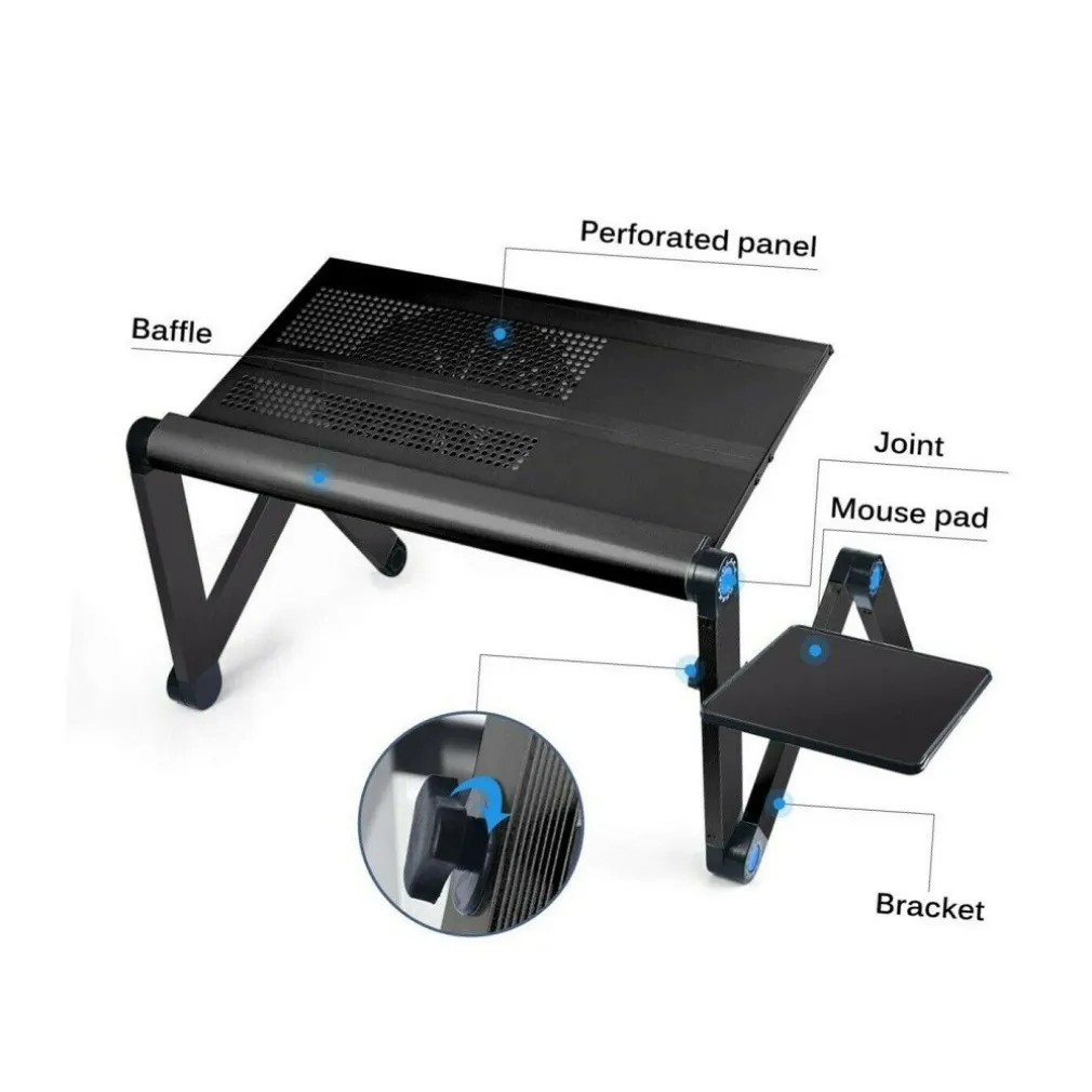 Tavolino pieghevole porta PC. Struttura completamente regolabile.