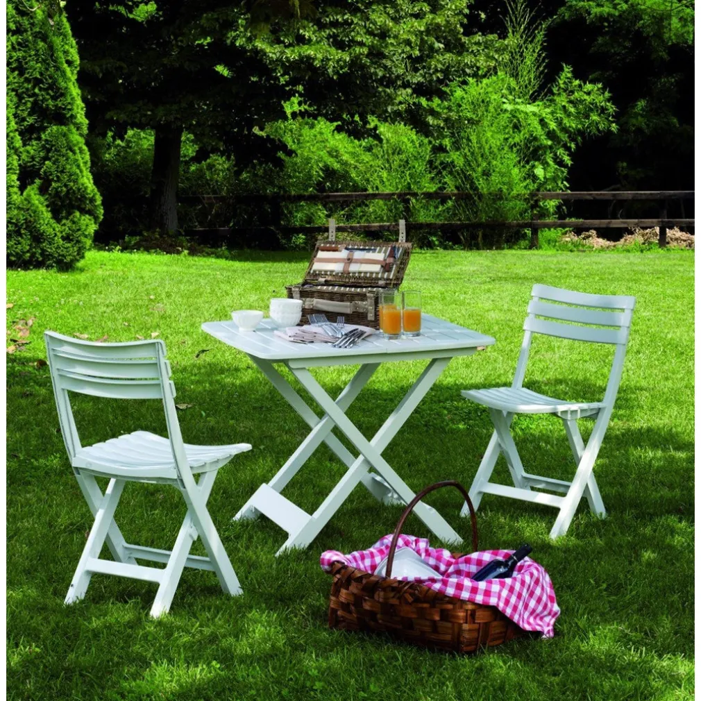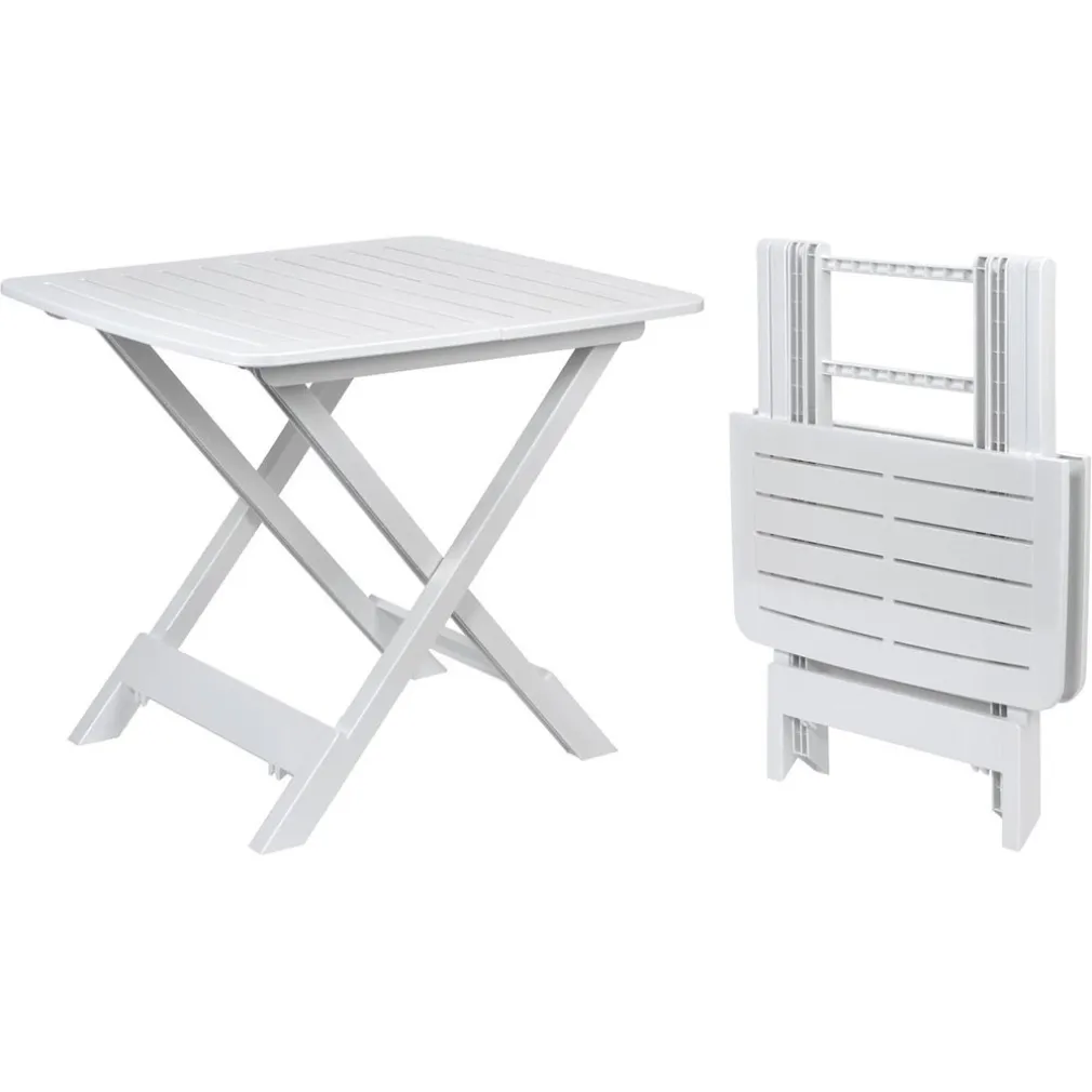 Tavolo Pieghevole Bianco in Polietilene 79x72x70cm – Tavolino da Giardino e Campeggio Modello Tevere