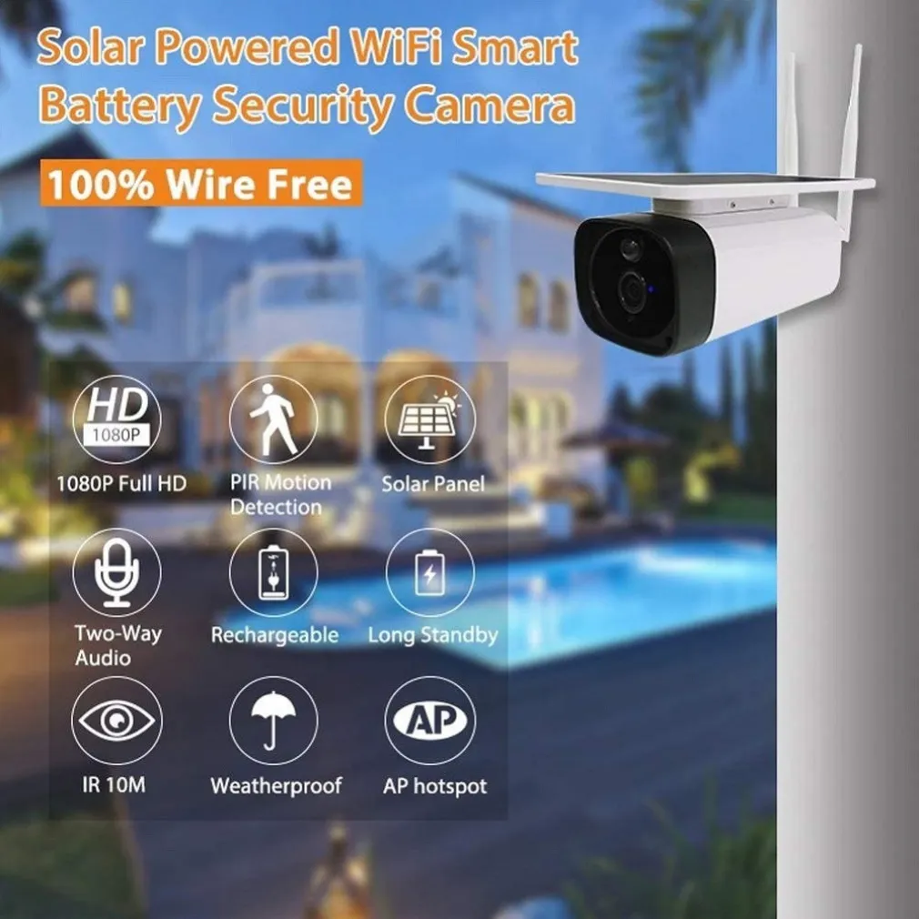 Resistente alle intemperie per esterni. Ip65 impermeabile e resistente all’umidità. La luce solare di un giorno mantiene la fotocamera in funzione per diversi giorni. Anche nei giorni di pioggia, può ottenere energia dalla luce solare e prolungare la durata della batteria. Integrando batterie, pannelli solari e modalità standby intelligente, impareggiabile. Guscio metallico, adatto a vari usi ambientali esterni scomodi, come ville, comunità, cortili, peschiere, frutteti, orti, case.