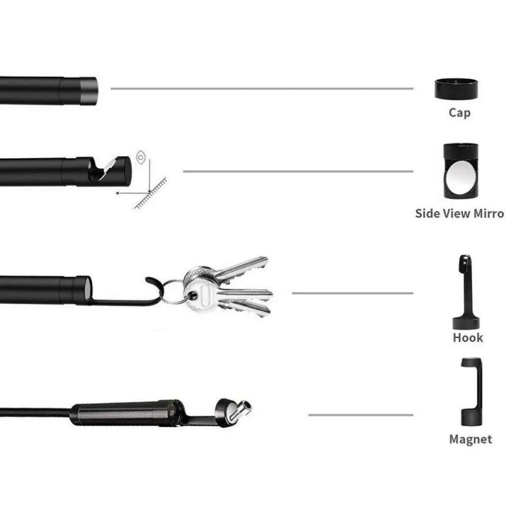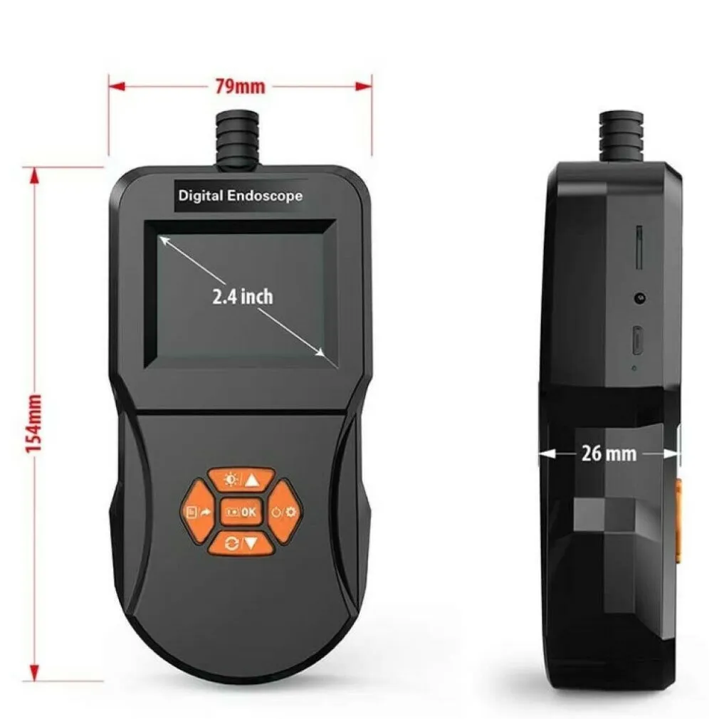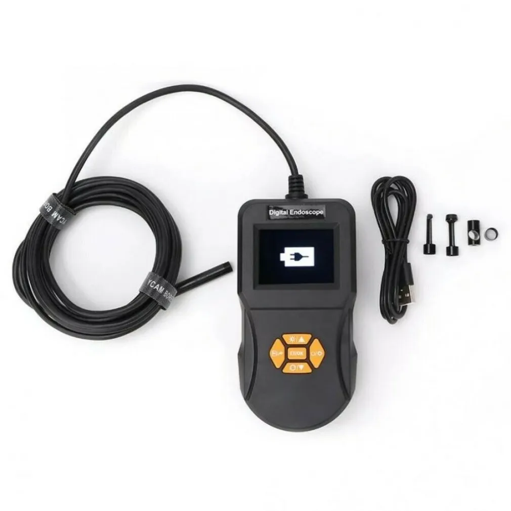 Telecamera endoscopica con cavo flessibile che consente di ispezionare posti angusti, tipo angoli nascosti, motori, tubi e tanto altro. L’immagine ripresa dalla microtelecamera presente in punta può essere visualizzata in tempo reale grazie al monitor a colori da 2.4″.