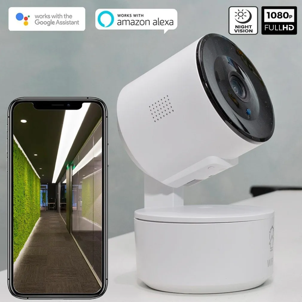 Elegante e funzionale telecamera SMART HD pratica e comoda, dotata di tecnologia WiFi compatibile con Amazon Alexa e Google Home che consente la gestione e la visione tramite smartphone. Dotata di sensore da 1/2.7″ CMOS a colori ad alta risoluzione 1080p (1920 x 1080) ed una lente grandangolare da 3.6mm con una visuale ampia di 135 gradi. Adatta per la videosorveglianza di ambienti domestici e lavorativi. Realizzata in plastica dal design moderno di colore bianco.