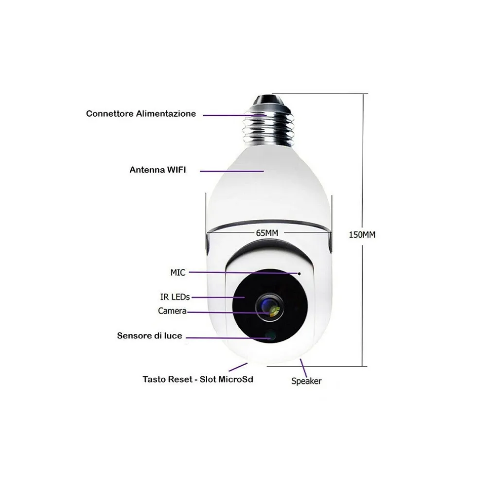 Telecamera Wifi Da Interno Lampadina Ip Cam Videosorveglianza Motorizzata JT8177