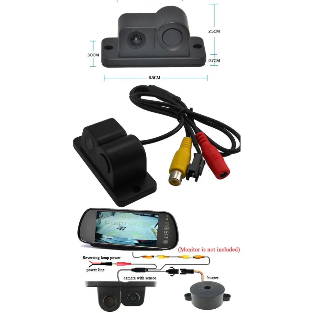 Nuovissima telecamera retromarcia, con cicalino retromarcia incluso e sensore di parcheggio integrato alla camera. Non vi stiamo offrendo la semplice telecamera, ma un kit completo per la sicurezza del vostro veicolo e per le persone che passeggiano durante la vostra manovra.
