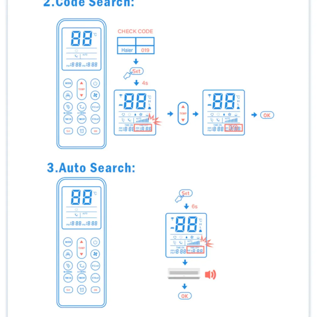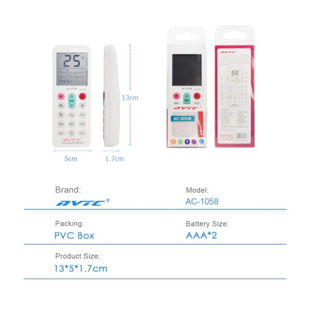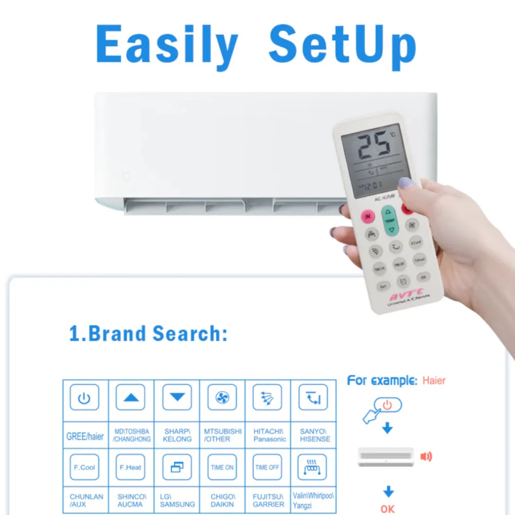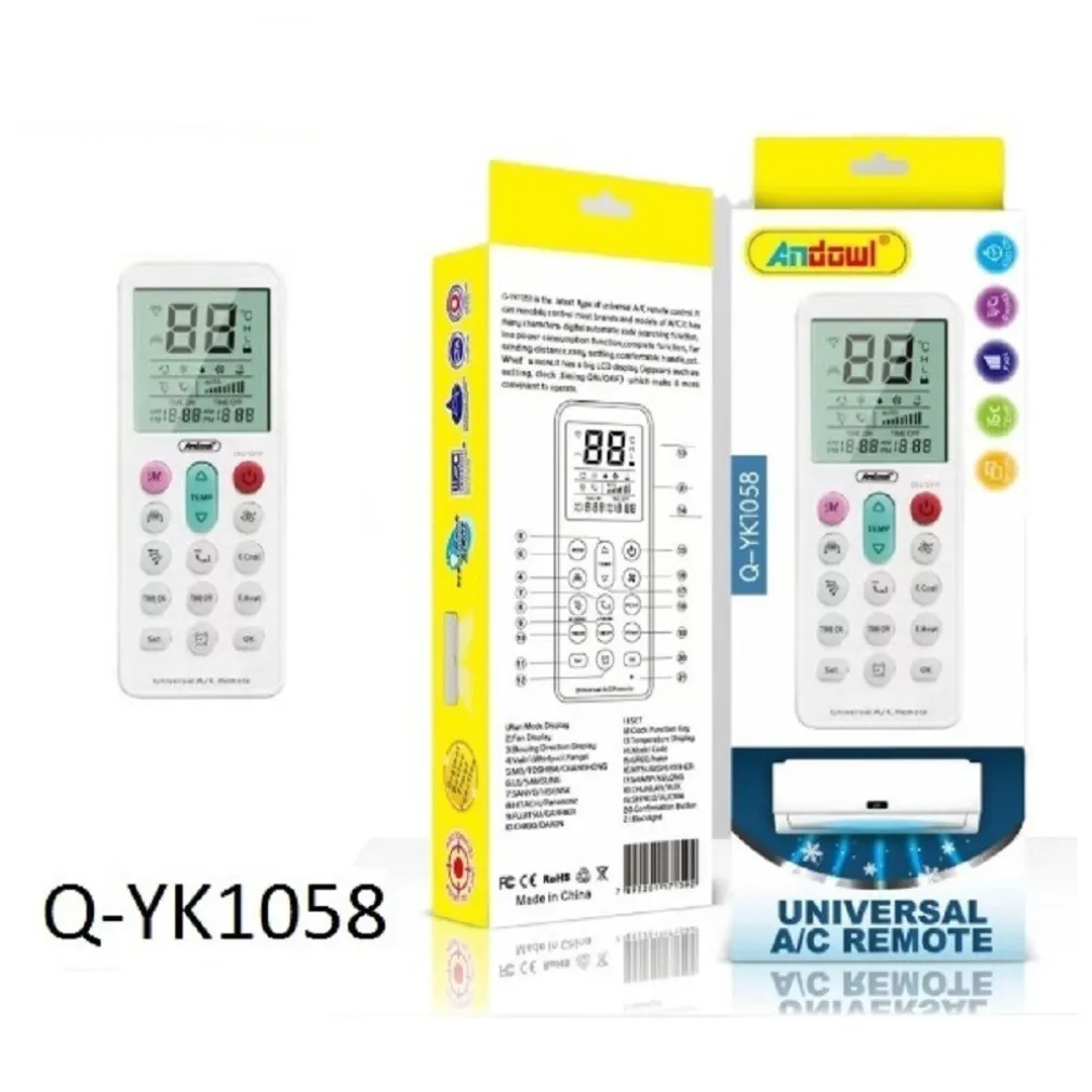 Un telecomando universale per condizionatori d’aria è compatibile con più marche di condizionatori d’aria. Telecomando sostitutivo del climatizzatore, ideale per sostituire il tuo telecomando danneggiato o smarrito. È compatibile con la maggior parte dei modelli di condizionatori d’aria sul mercato e puoi cercare il tuo modello attraverso l’elenco di compatibilità fornito. La sua programmazione è facile e veloce, e copre tutte le principali funzioni del controller originale, come la regolazione della temperatura e della velocità, mentre la sua portata è soddisfacente.