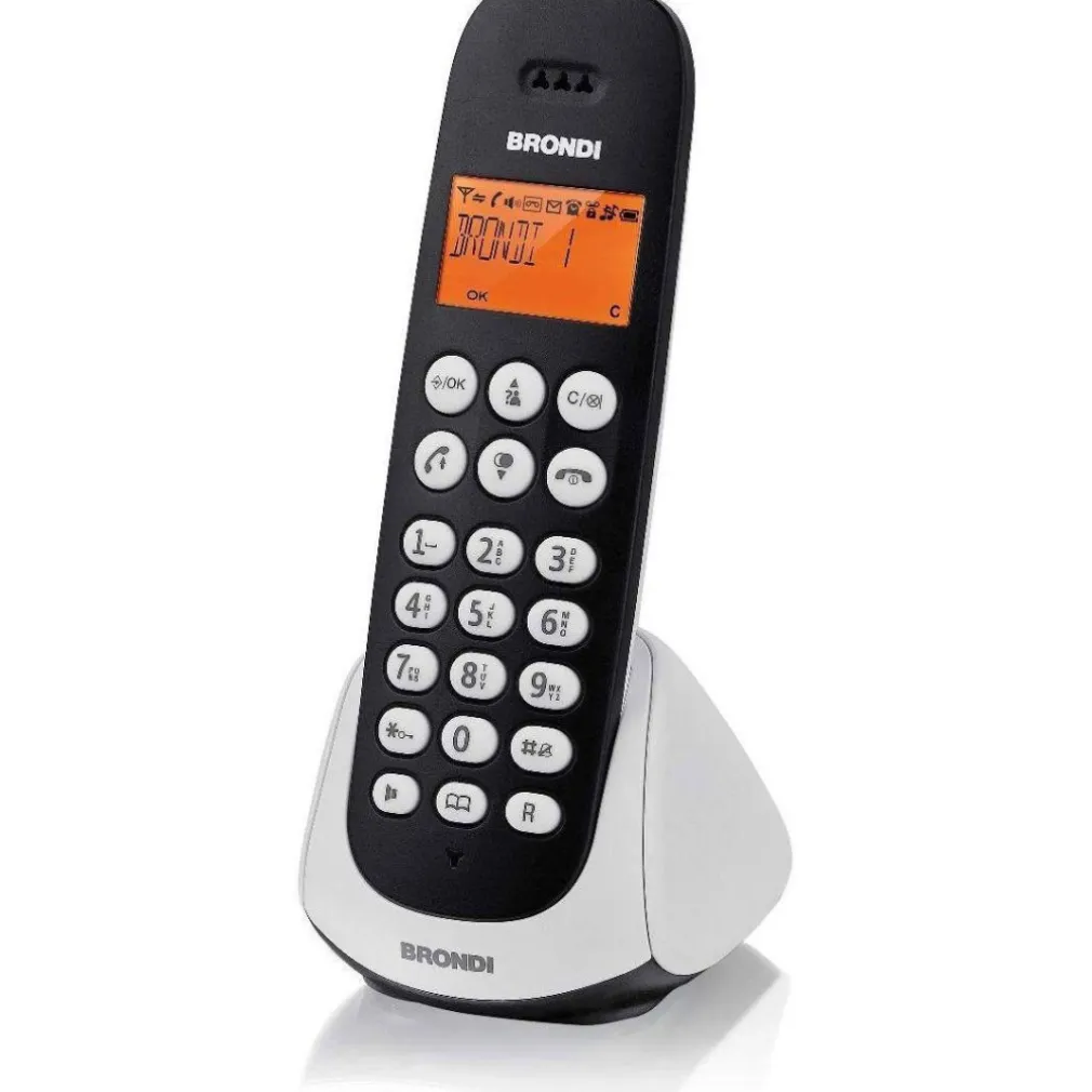 L’Adara cordless di Brondi ha un grande display alfanumerico retroilluminato con menù intuitivo, 20 memorie alfanumeriche e una memoria delle ultime 10 chiamate ricevute e degli ultimi 10 numeri chiamati.