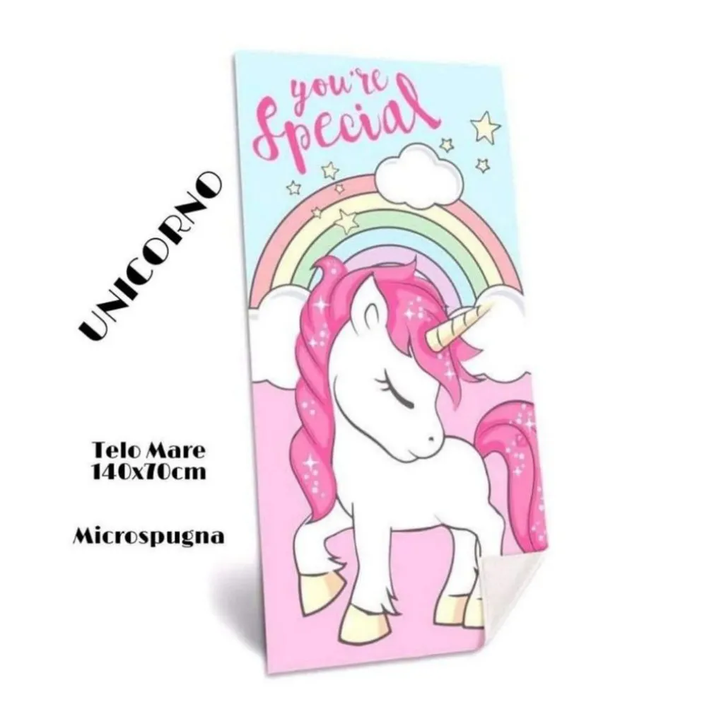 Telo mare unicorni rosa: magico e con sacca omaggio! Morbido, colorato e assorbente, perfetto per le giornate al mare. Aggiungi stile e praticità con la borsa mare assortita. Goditi il mare con i tuoi unicorni preferiti!