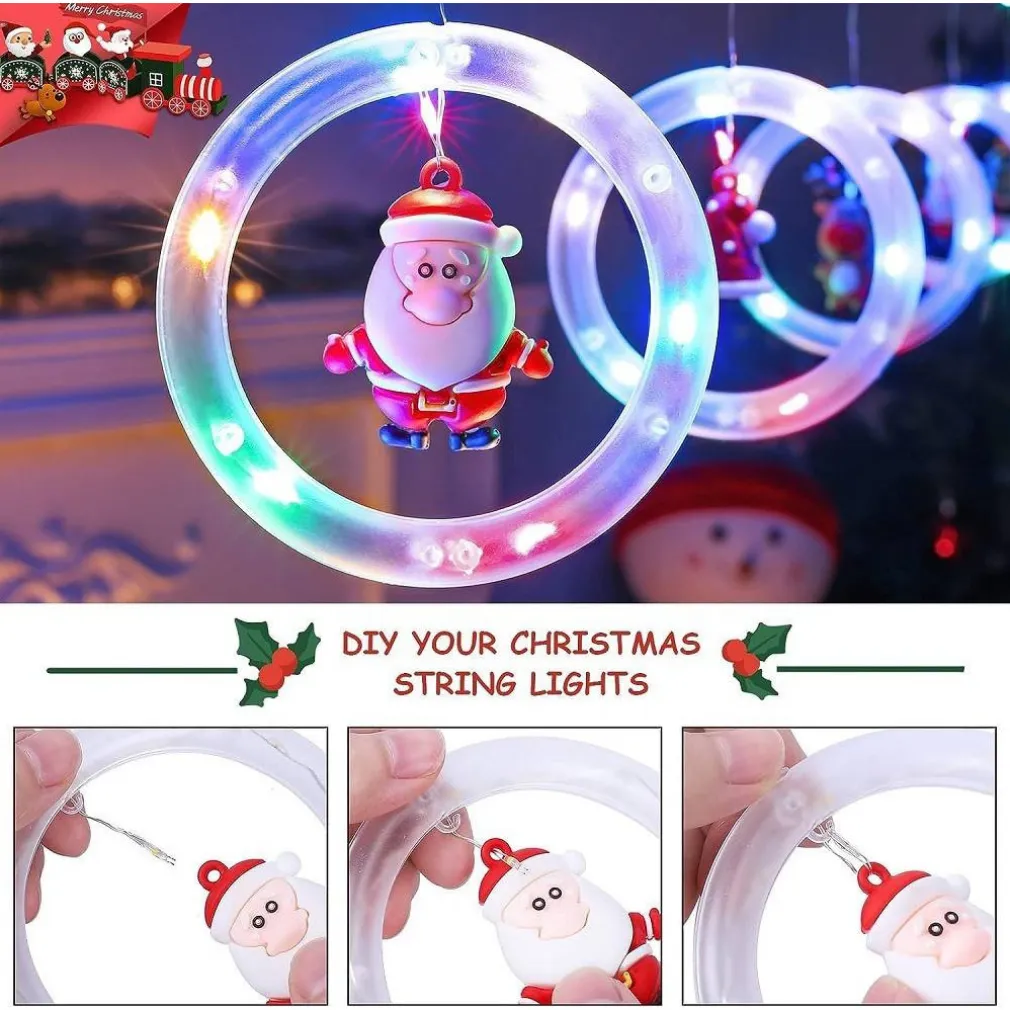 Tenda Luminosa con Statuetta di Natale, Catena di Luce 8 Modalità, Luci Natalizie per Finestre