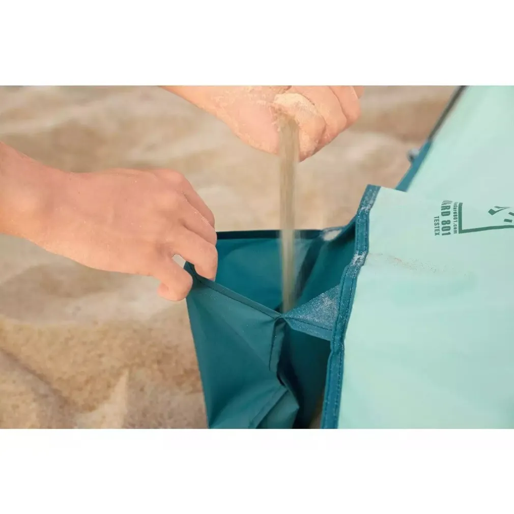- 2 sacchi per la sabbia integrati nella tenda per fare da ancoraggio e rendere la struttura più stabile.