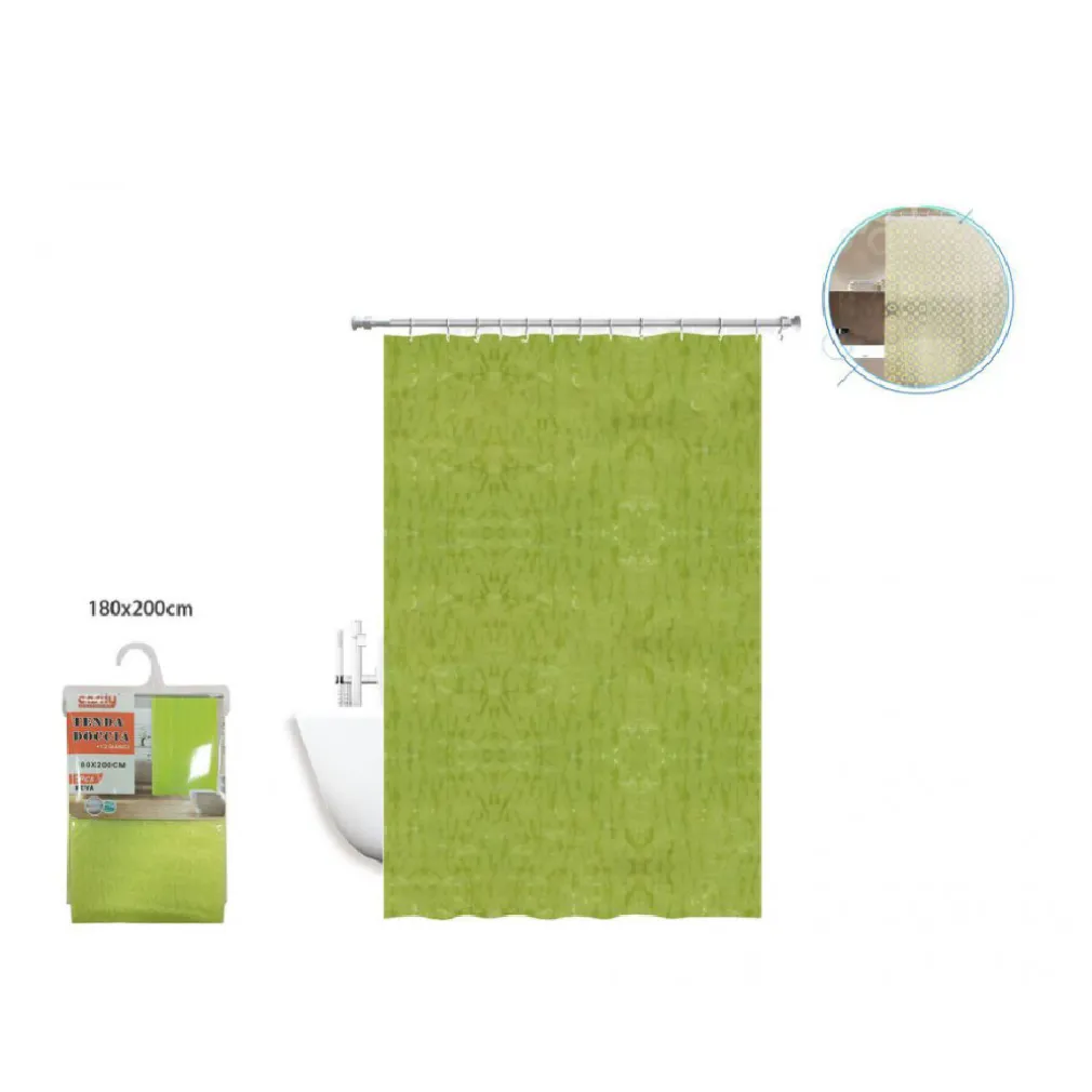 Tenda da doccia o vasca da bagno, realizzata in plastica EVA resistente a funghi e batteri, anallergico e atossico, elemento di arredo pratico e funzionale, facile da installare e da lavare, un modo facile e veloce per rinnovare l’ambiente con colori vivaci e fantasie allegre, accessorio per il bagno funzionale e di arredo, abbinalo con il suo set coordinato e scopri tutta la gamma disponibile di articoli bagno, gioca con i colori e rinnova il tuo bagno. La tenda doccia è robusta e durevole, poiché costituita in materiale antimuffa. È pratica da montare, grazie ai suoi 12 comodi anelli per appenderla all’asta. Ganci inclusi.