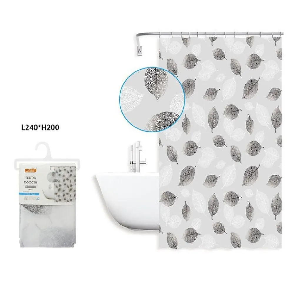 - 1 Tenda Doccia Vasca Bagno 240 x 200cm PEVA Fantasia con Foglie Impermeabile 59808